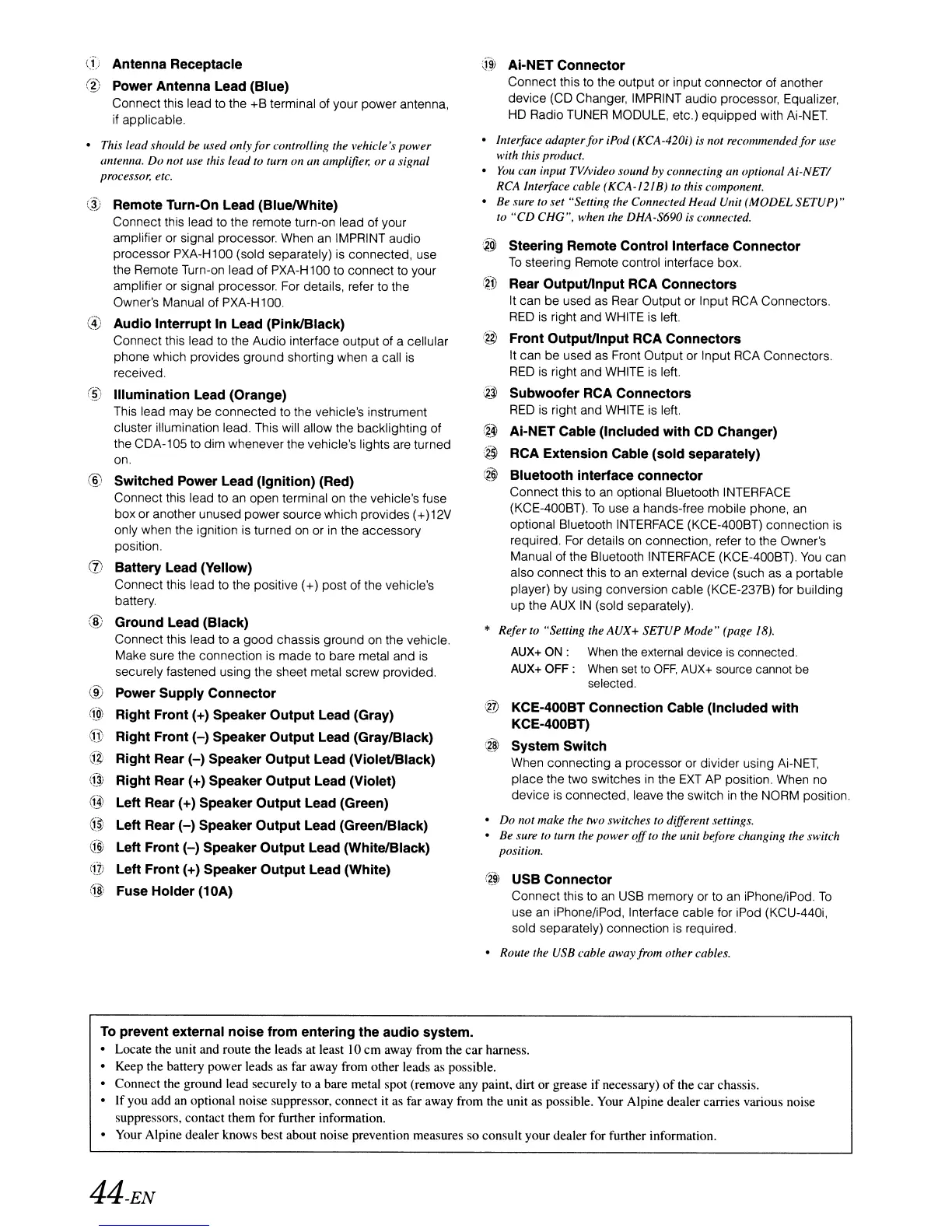 far away from the unit as possible. Your Alpine dealer carries various noise