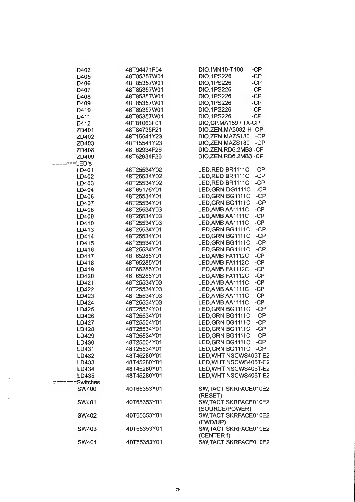 Alpine CDA-9812RB - Electrical Parts List (Continued: Diodes, LEDs)