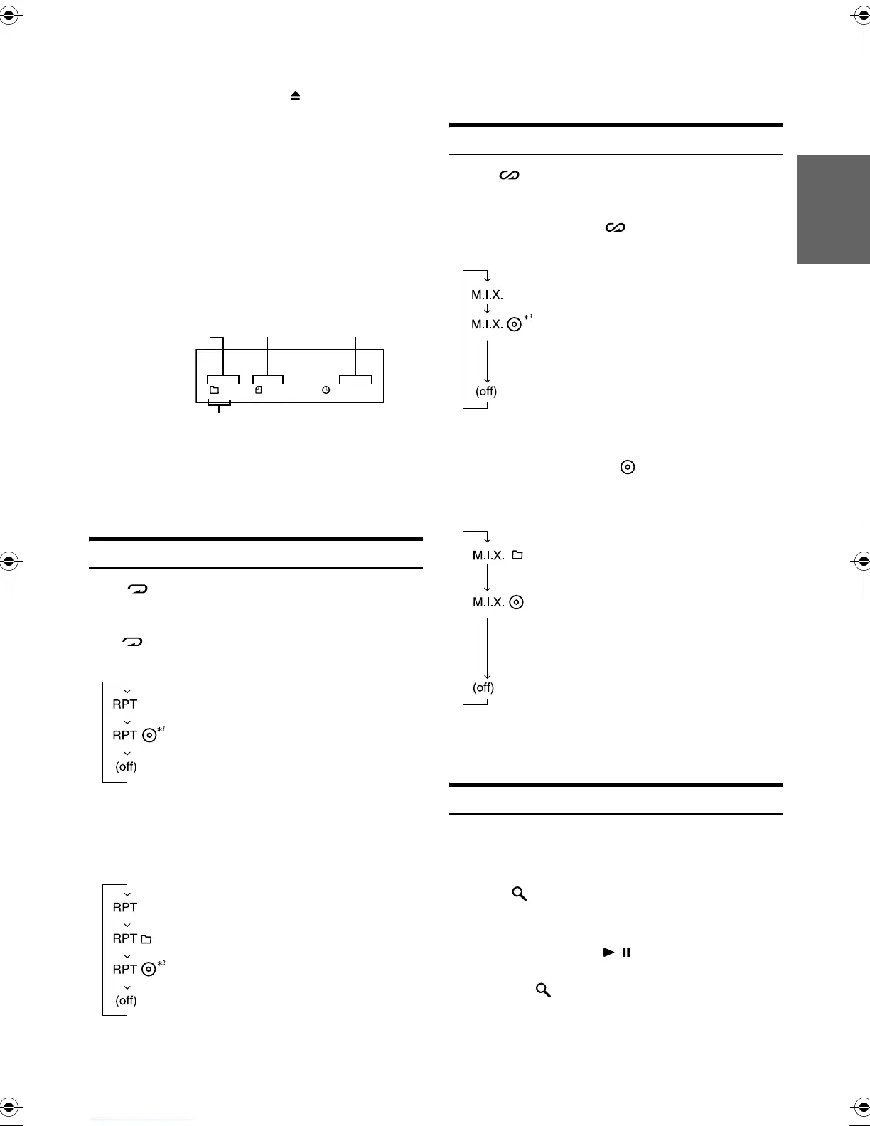 • If RPT is set to ON during M.I.X. play in CD changer mode, M.I.X.