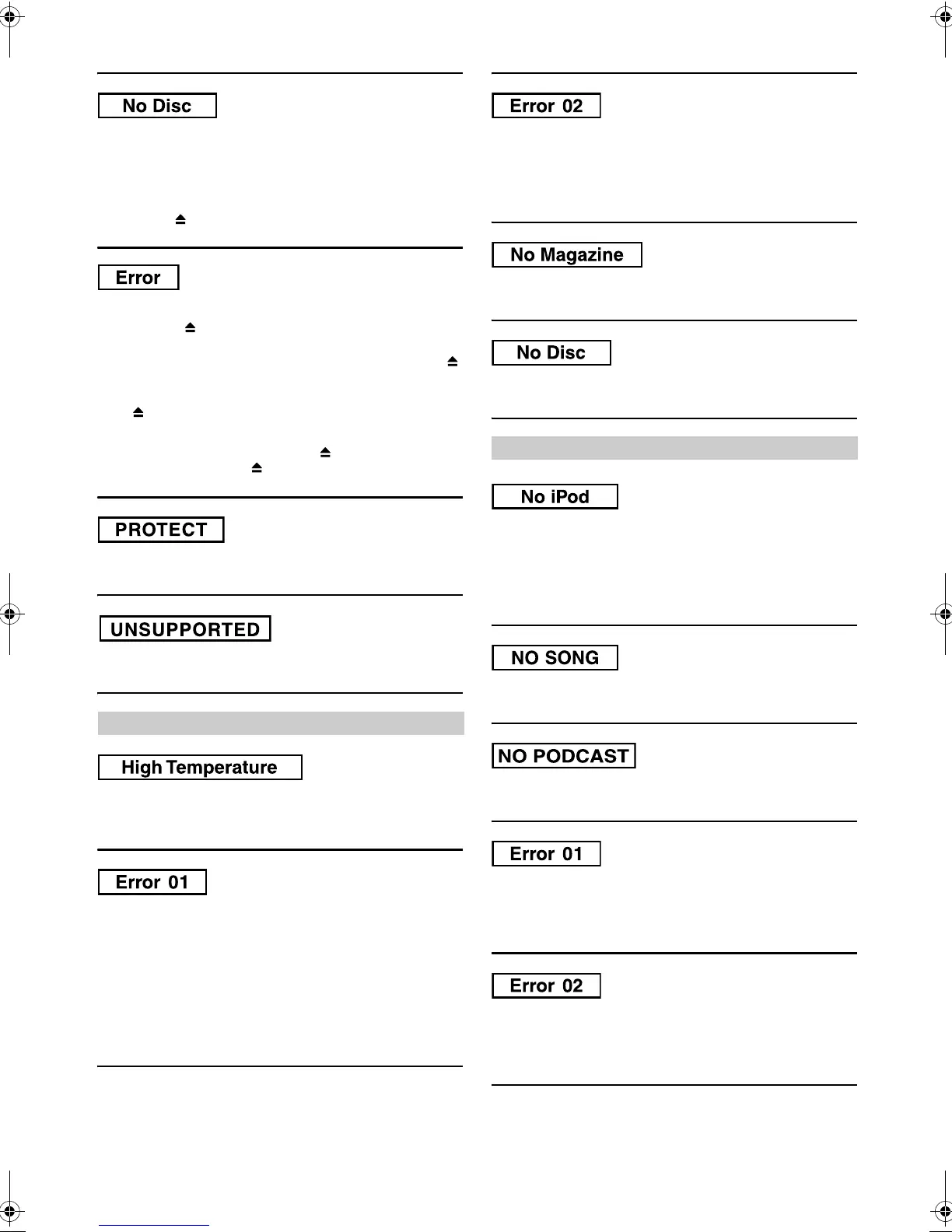 • Although a disc is inserted, “No Disc” is displayed and the unit