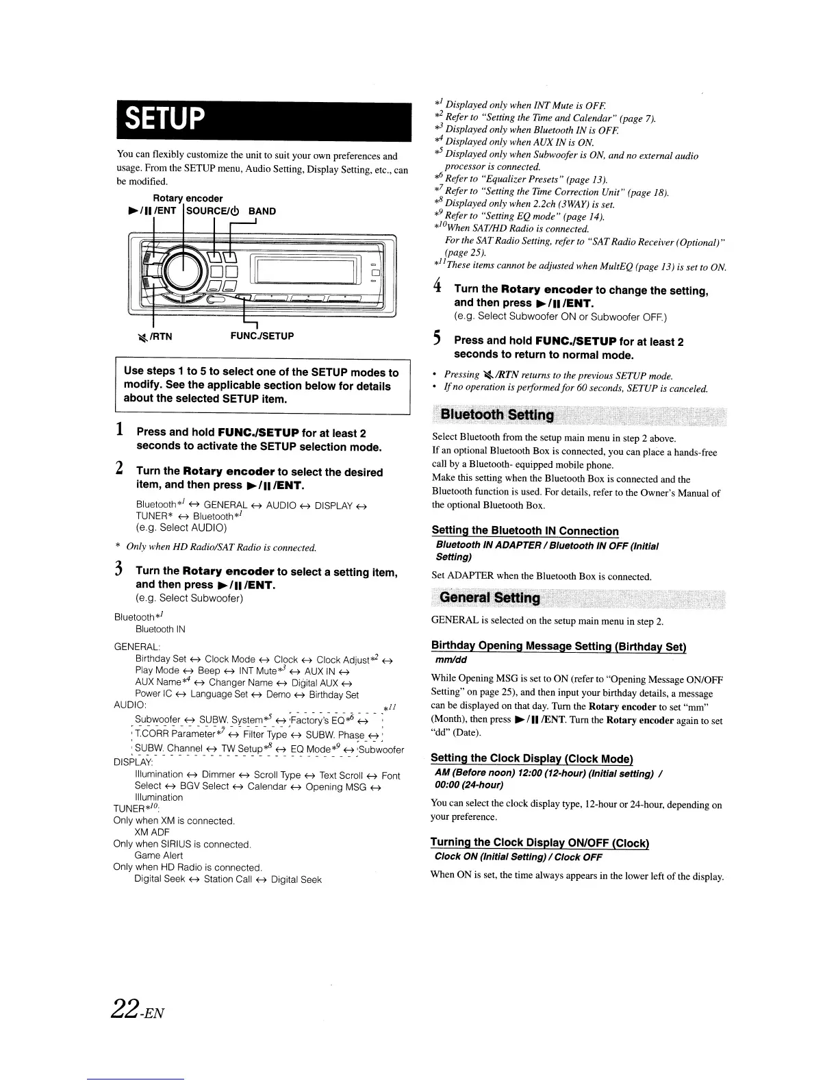 For the SATRadio Setting, refer to