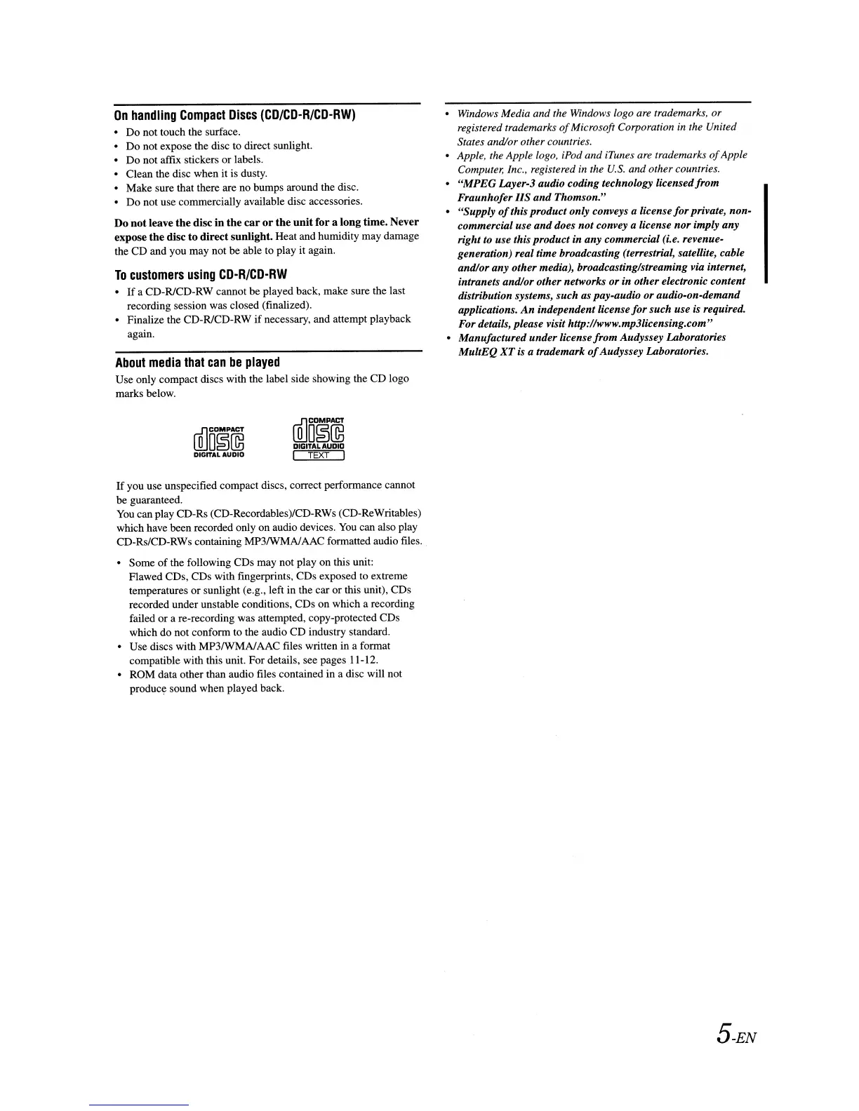 compatible with this unit. For details, see pages 11-12.