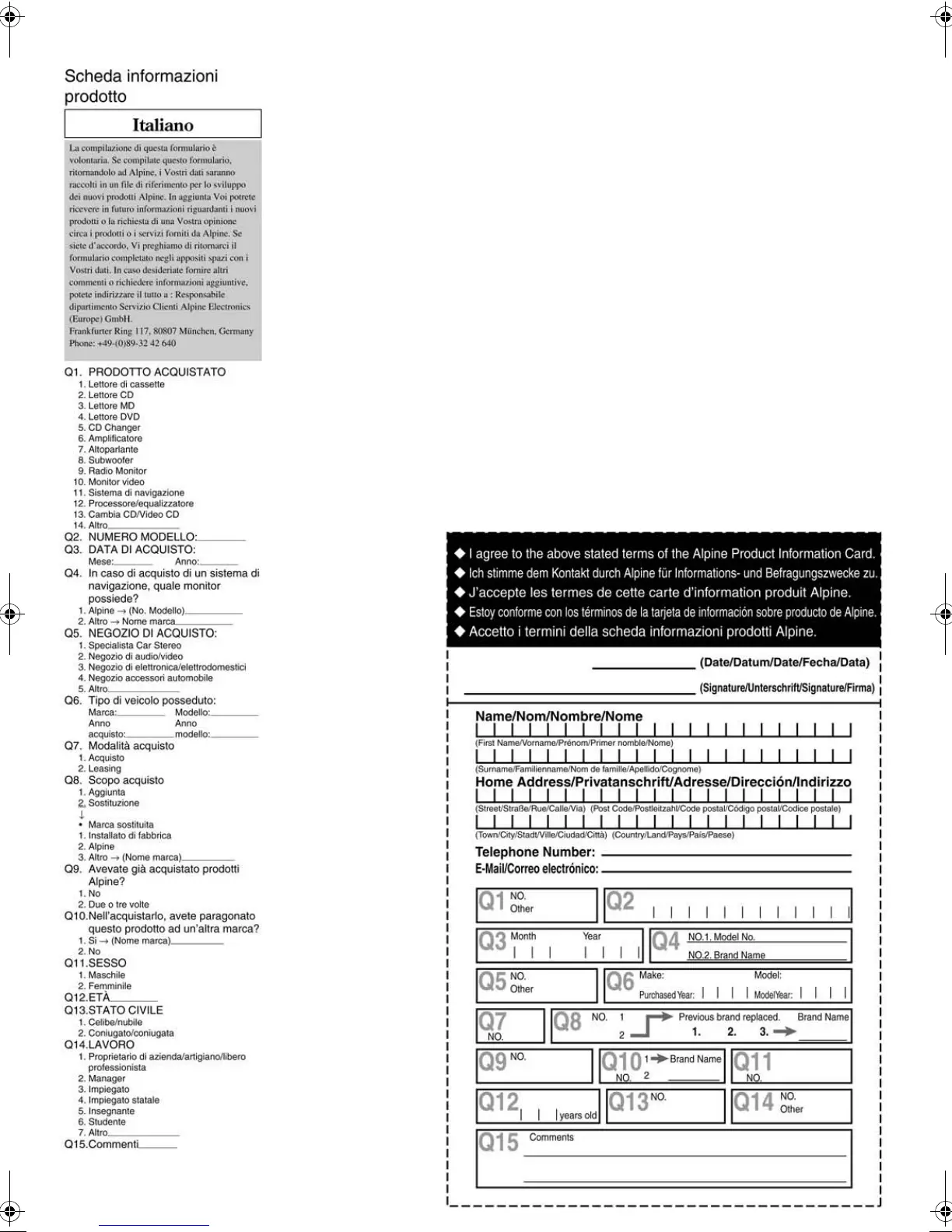 Alpine CDA9857 - Product Information Card (Italian)
