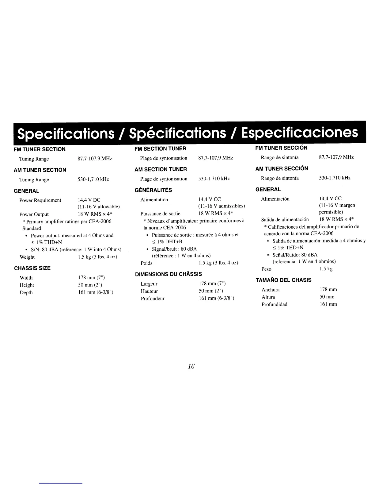 * Primary amplifier ratings per CEA-2006
