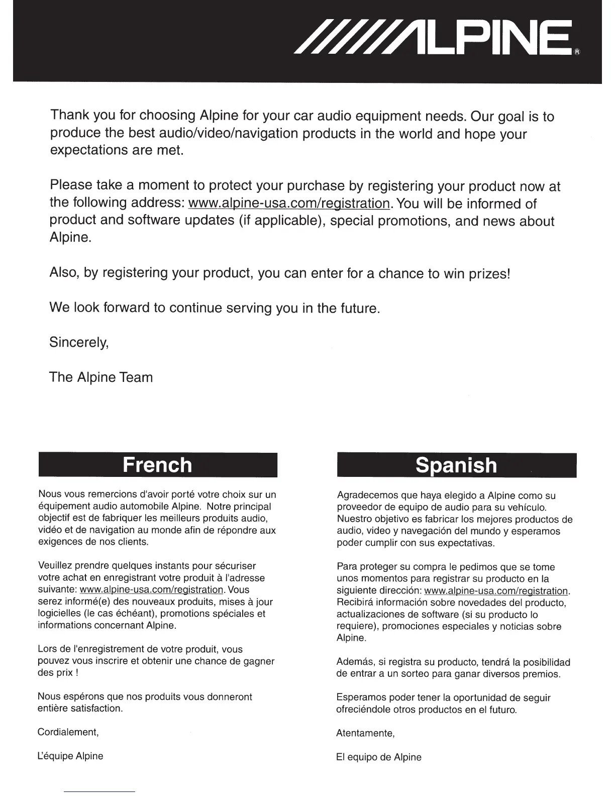 suivante: www.alpine-usa.com/registration. Vous