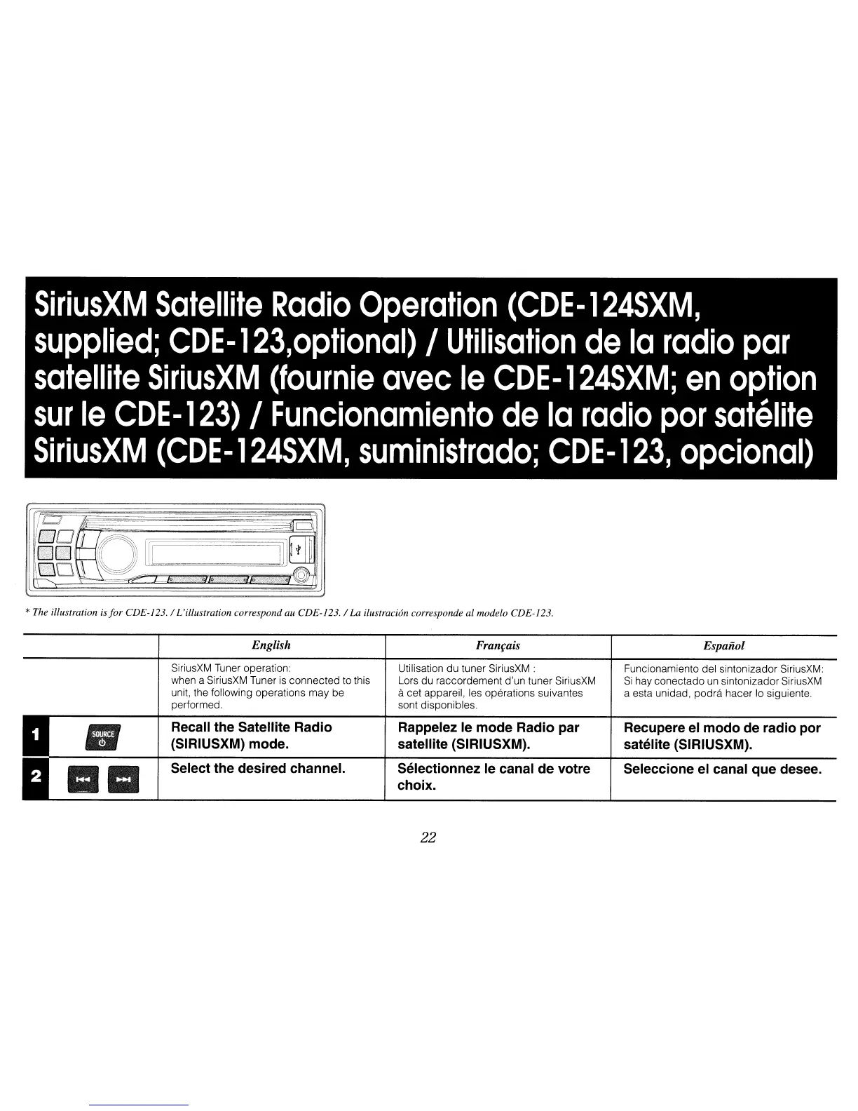 SiriusXM Tuner operation: