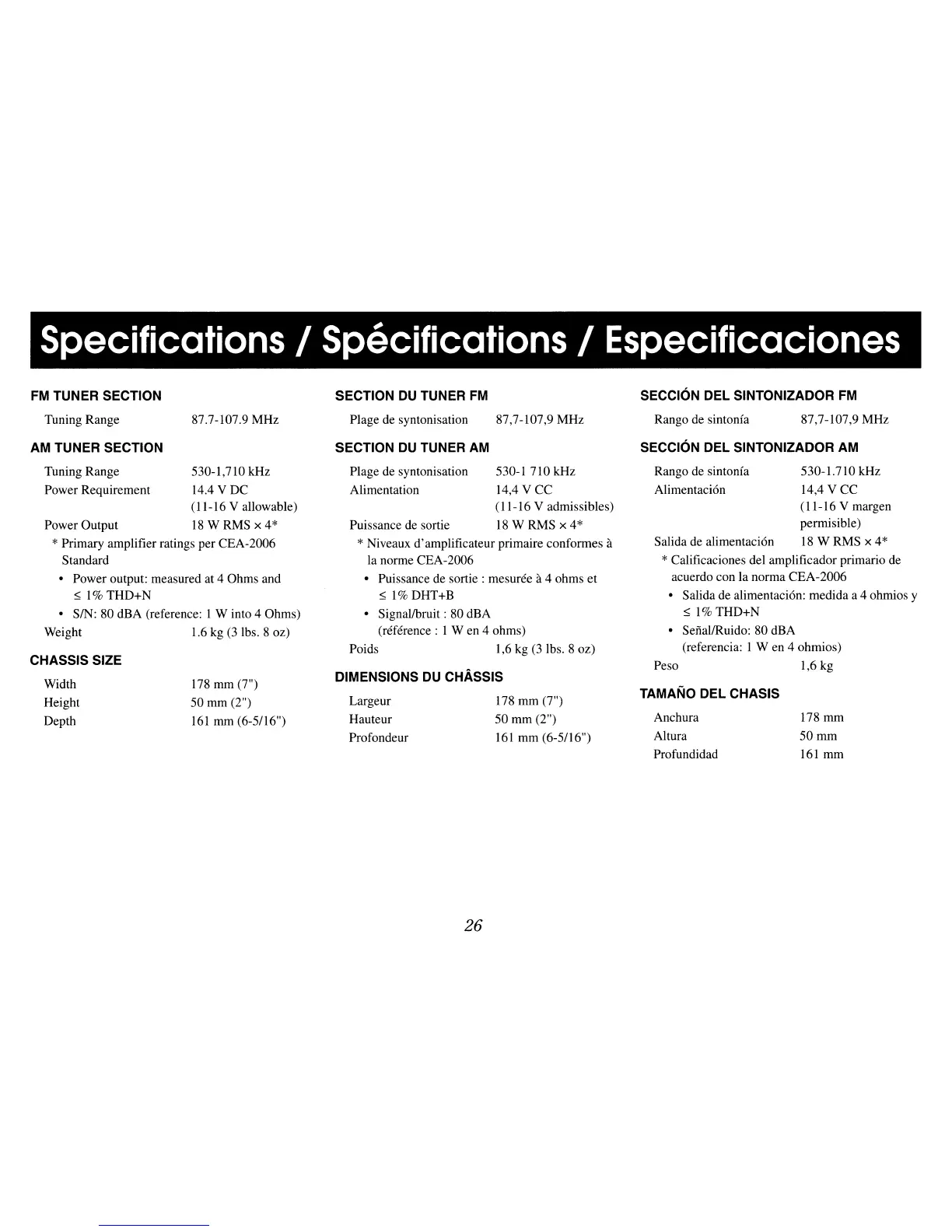 Tuning Range 87.7-107.9 MHz Plage de syntonisation 87,7-107,9 MHz