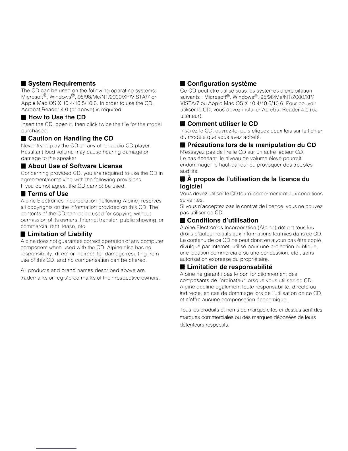 Alpine ne garantit pas