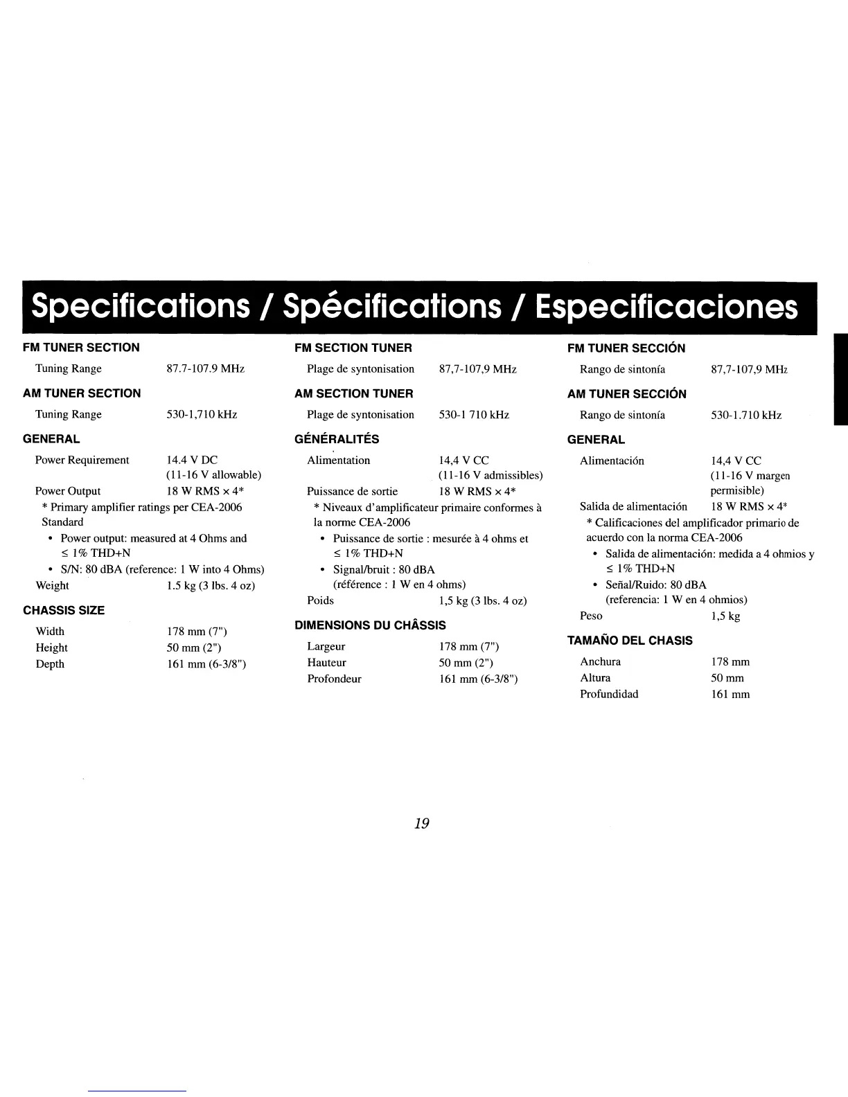 • Salida de alimentaci6n: medida a 4 ohmios y