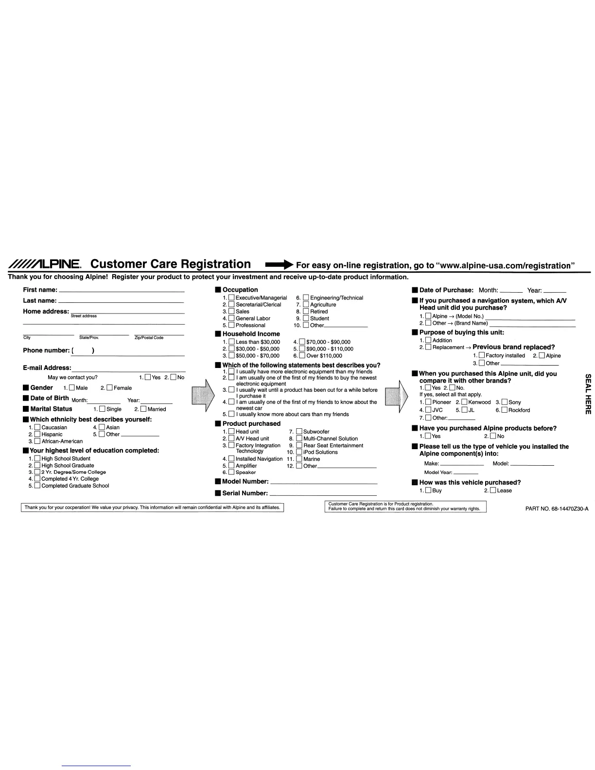 Thank you for your cooperation! We value your privacy. This information will remain confidential with Alpine and its affiliates.