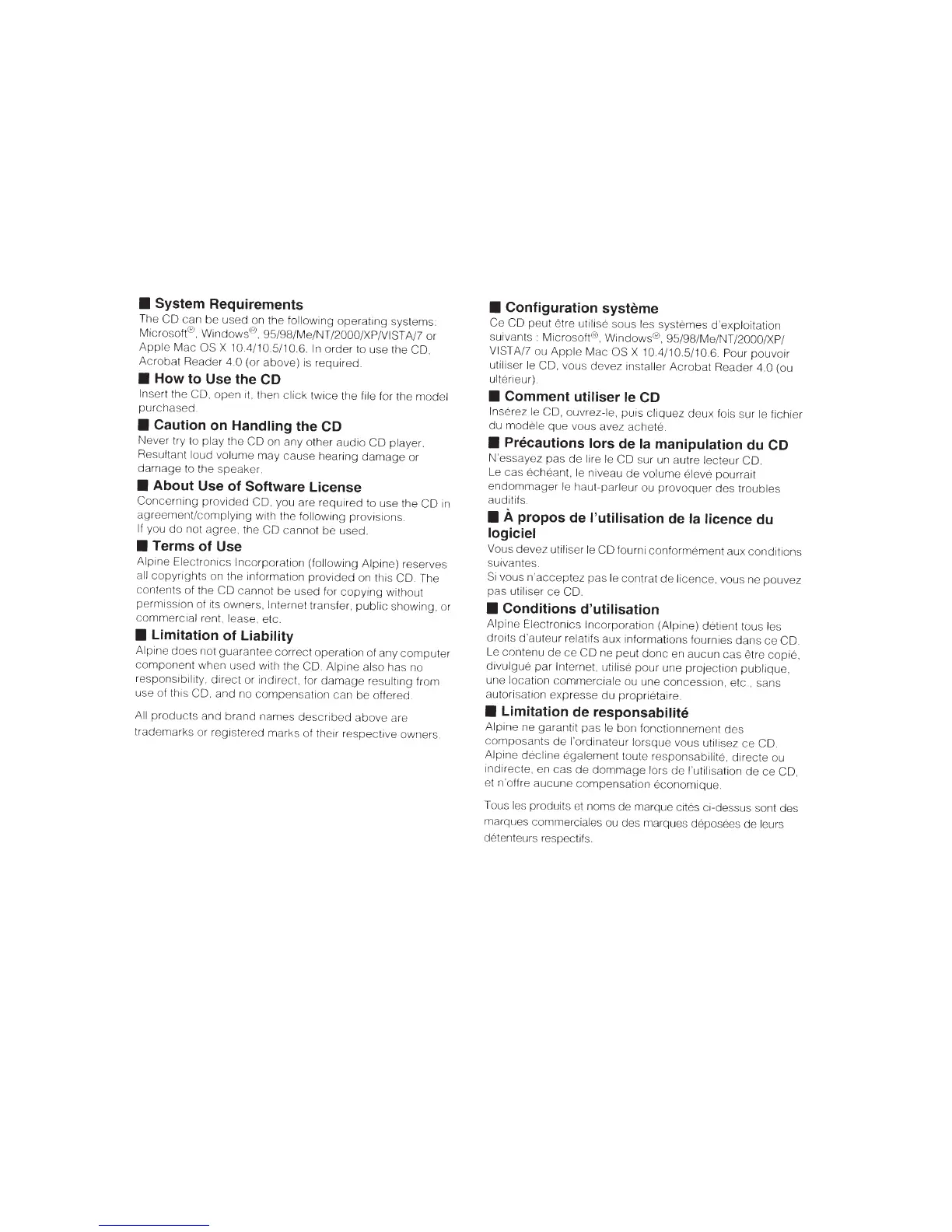 utiliser le CD fourni conformement aux