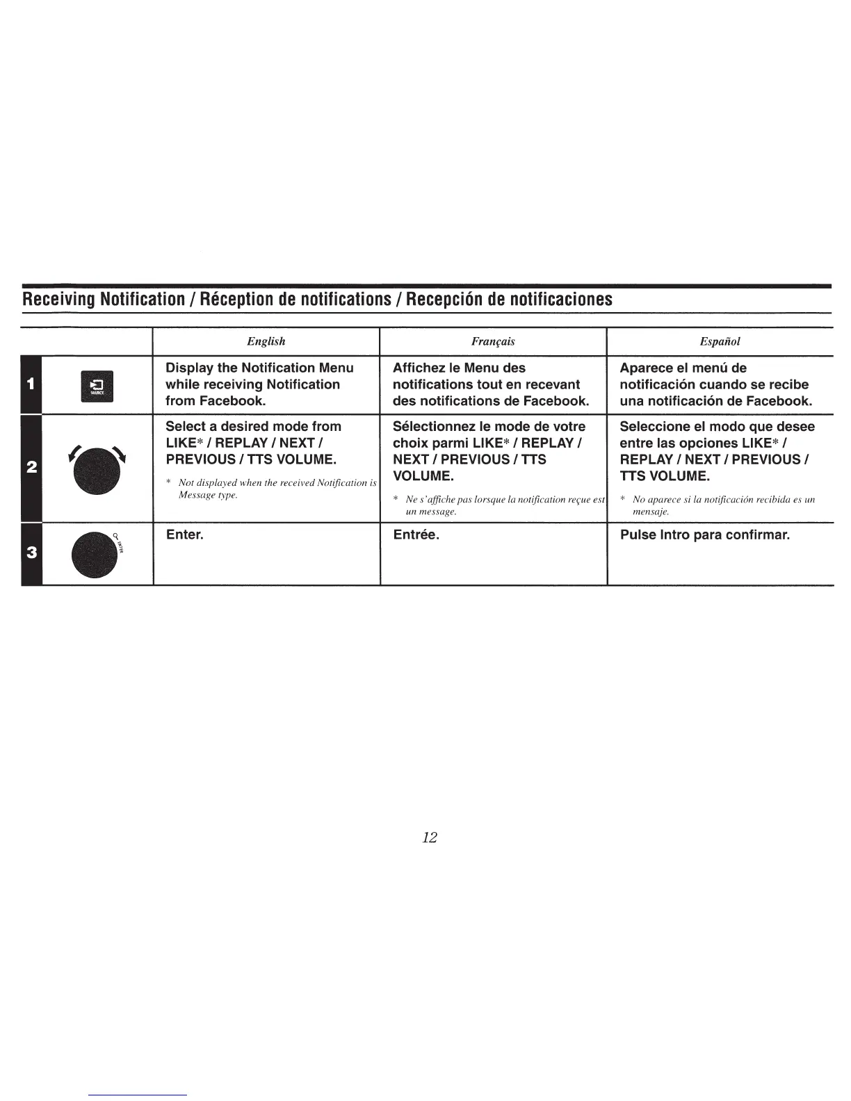 * Not displayed when the received Notification is