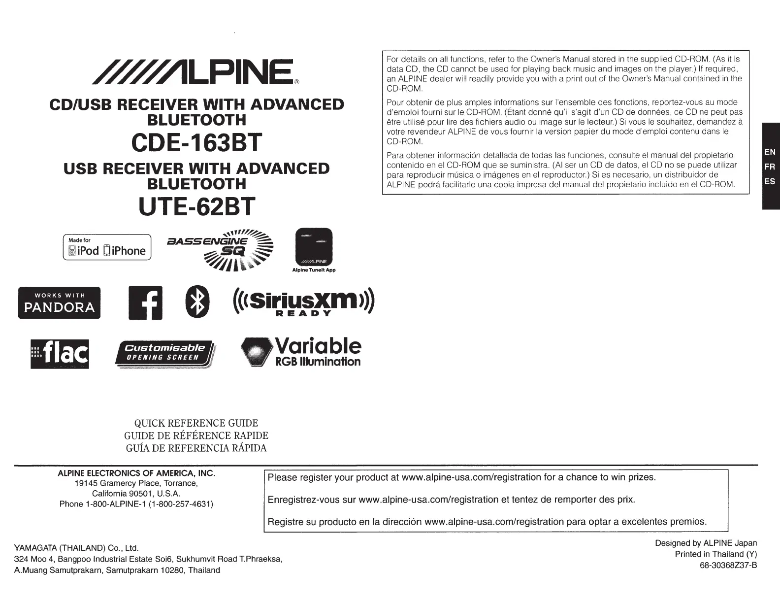 Please register your product at www.alpine-usa.com/registration for a chance to win prizes.
