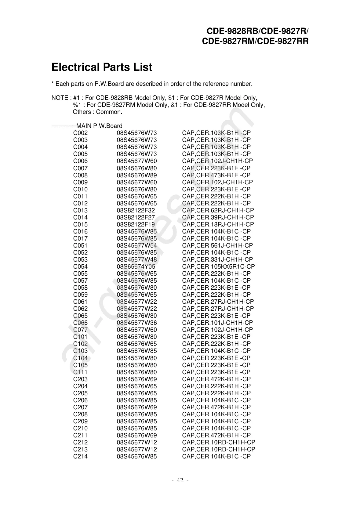NOTE : #1 : For CDE-9828RB Model Only, $1 : For CDE-9827R Model Only,