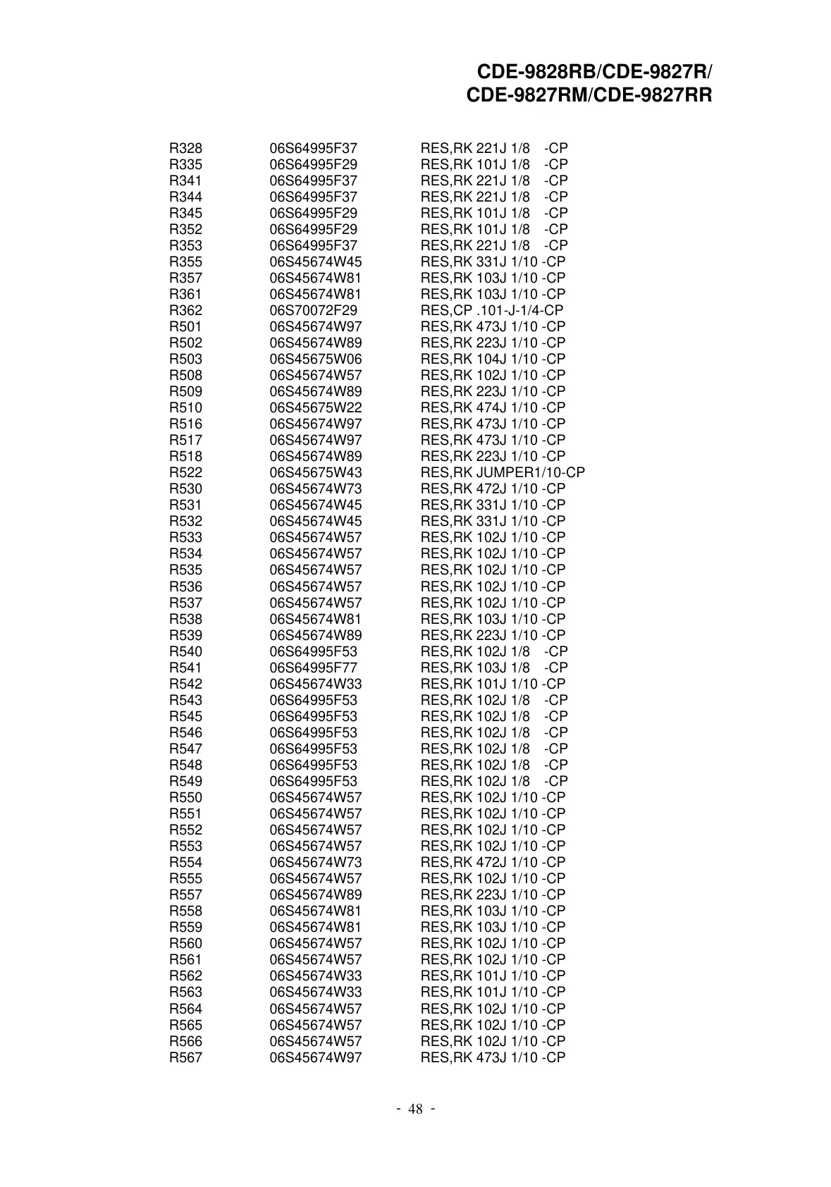 R548 06S64995F53 RES,RK 102J 1/8 -CP