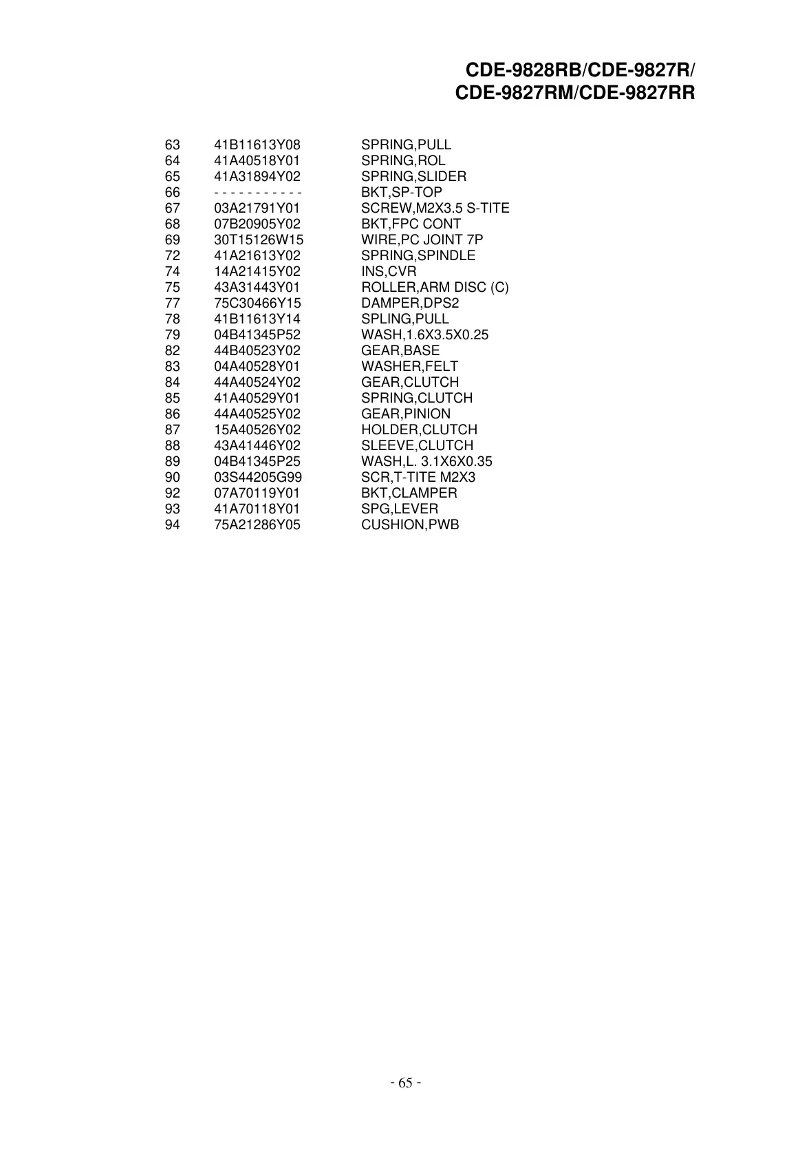 65 41A31894Y02 SPRING,SLIDER
