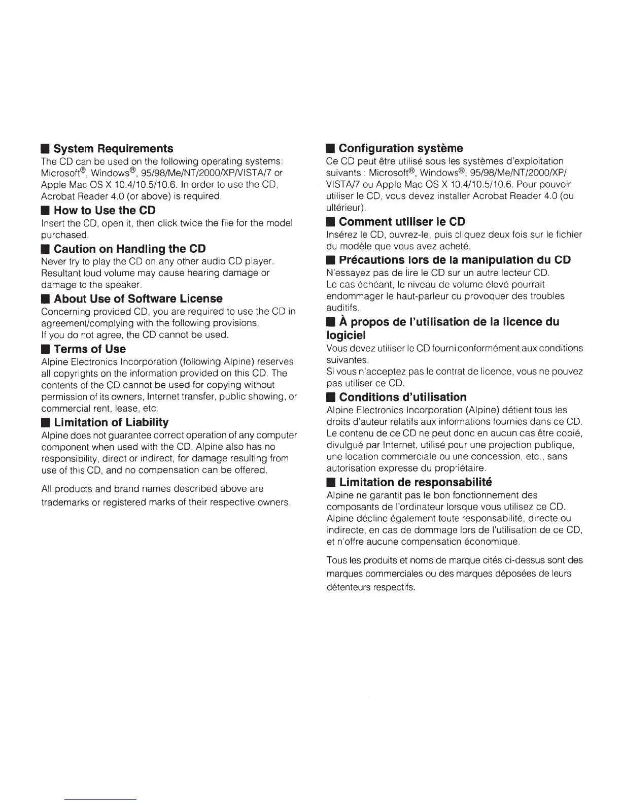 Alpine decline egalement toute responsabilite, directe