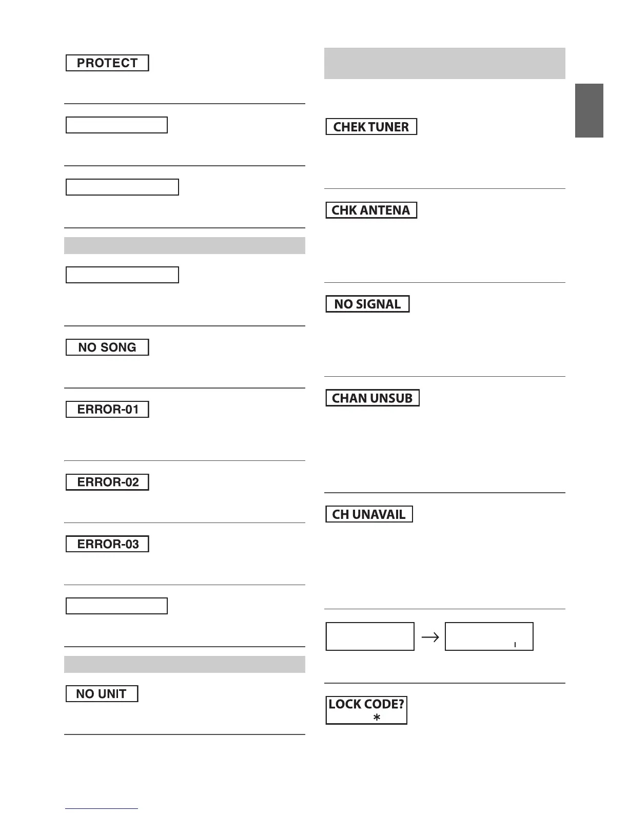 The following messages may be displayed while operating the unit in