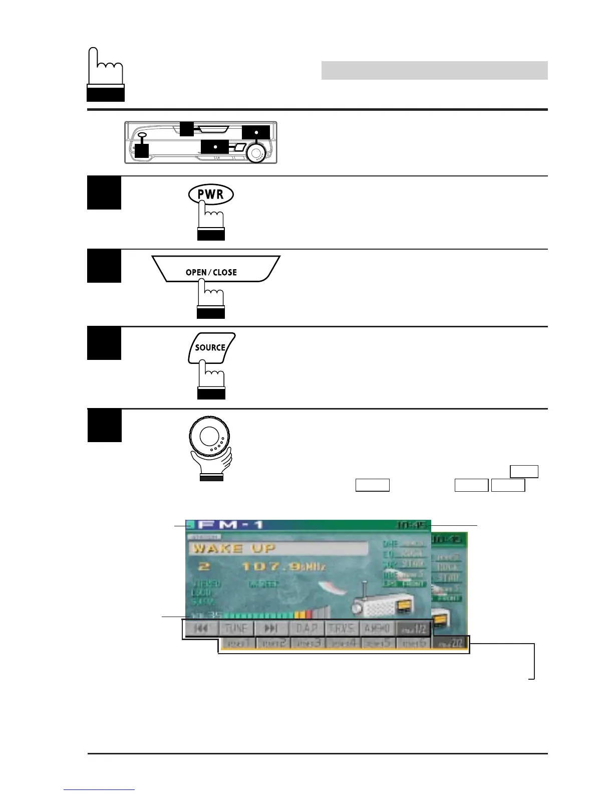 Press the SOURCE button. The display shows