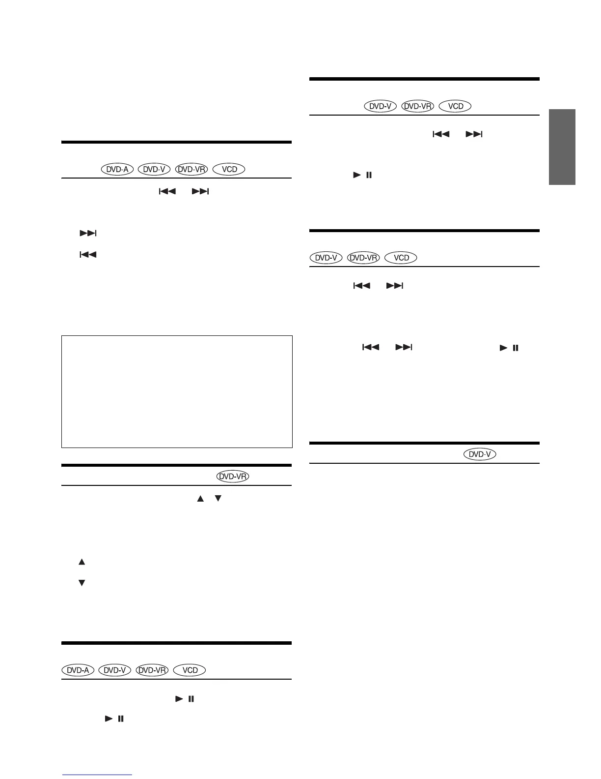 • During pause, operation can be performed for DVD Audio.