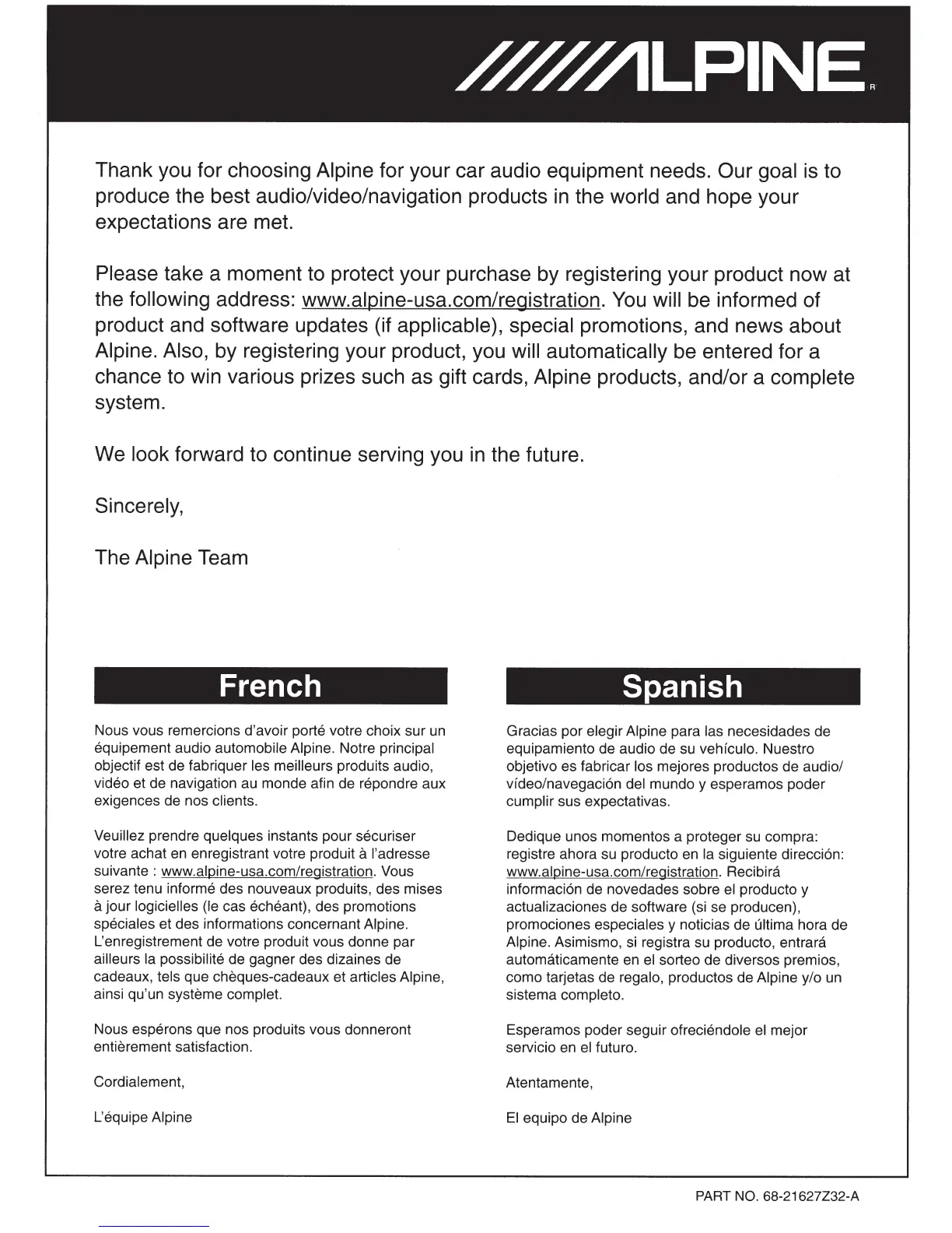 suivante : www.alpine-usa.com/registration. Vous