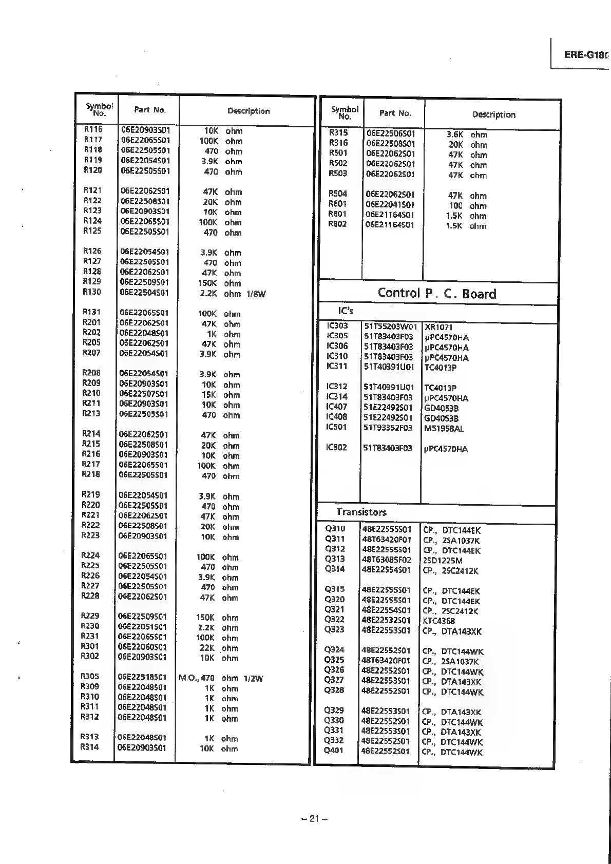 Alpine ERE-G180 - Control P.C. Board Components; Control P.C. Board ICs; Control P.C. Board Transistors