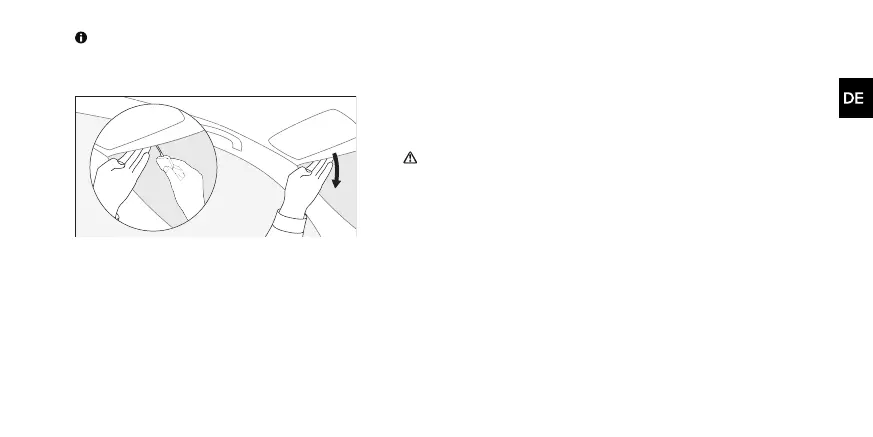 2. Ziehen Sie das Dachfutter vorne vorsichtig herunter, bis eine kleine