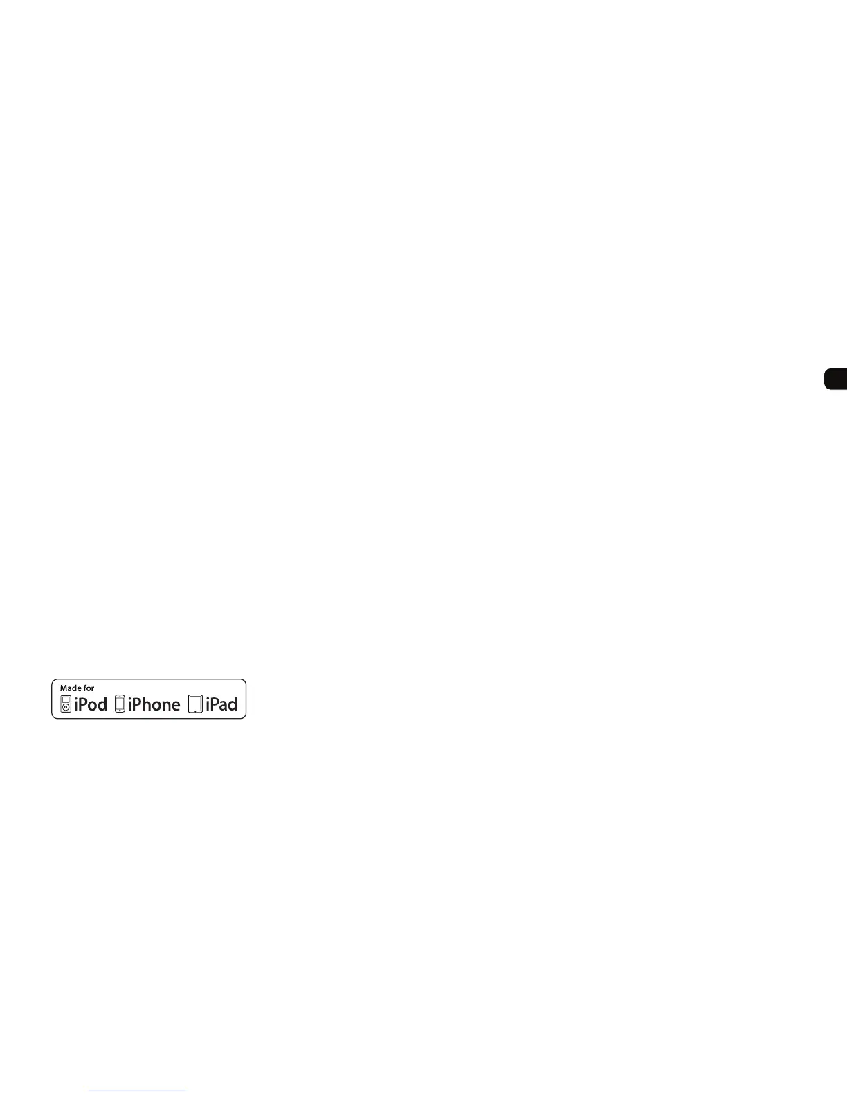 “Made for iPod,” “Made for iPhone,” and “Made for iPad” mean that an electronic accessory has been designed to