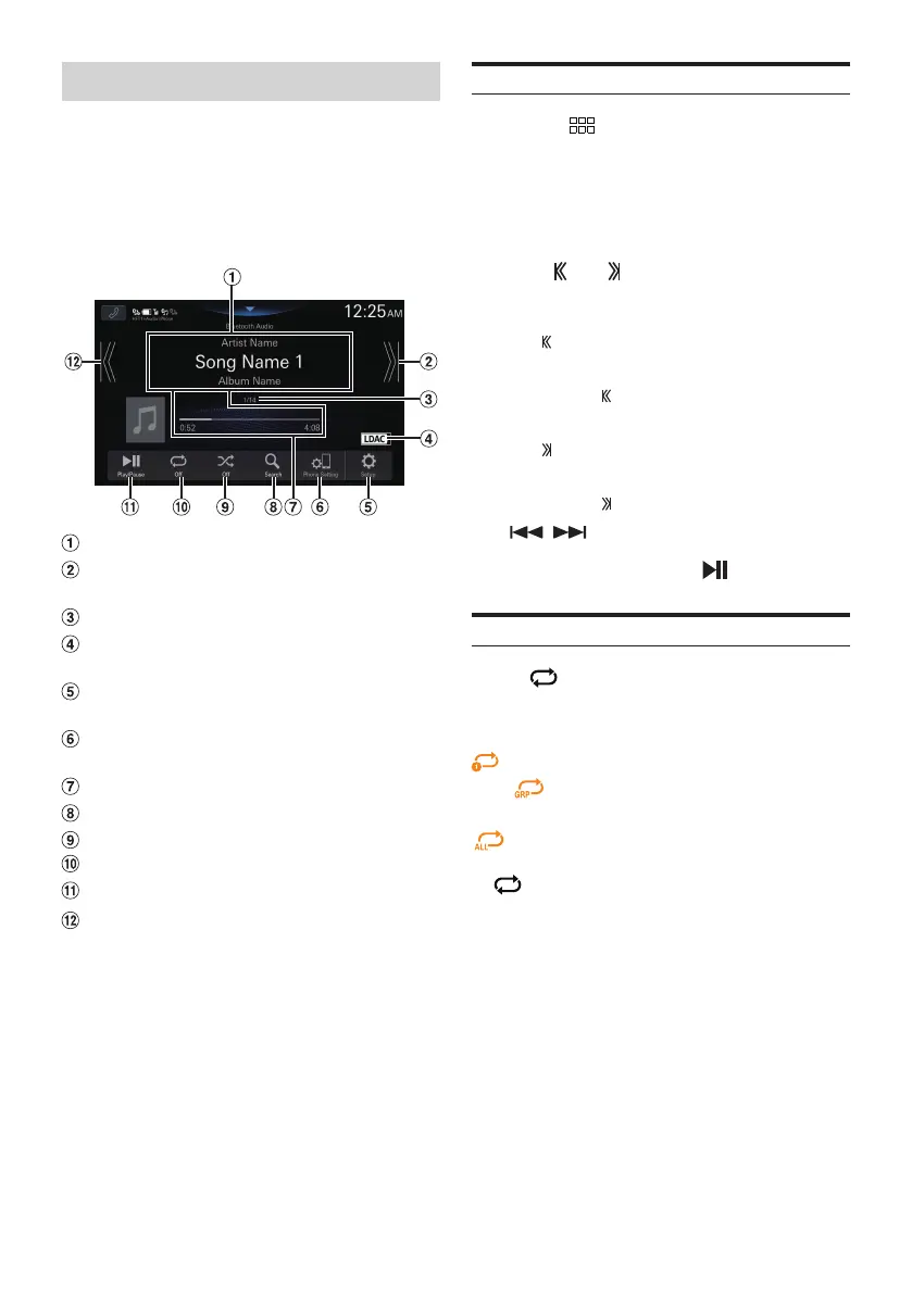 Alpine HALO 9 - Bluetooth Audio; Playback; Repeat Play