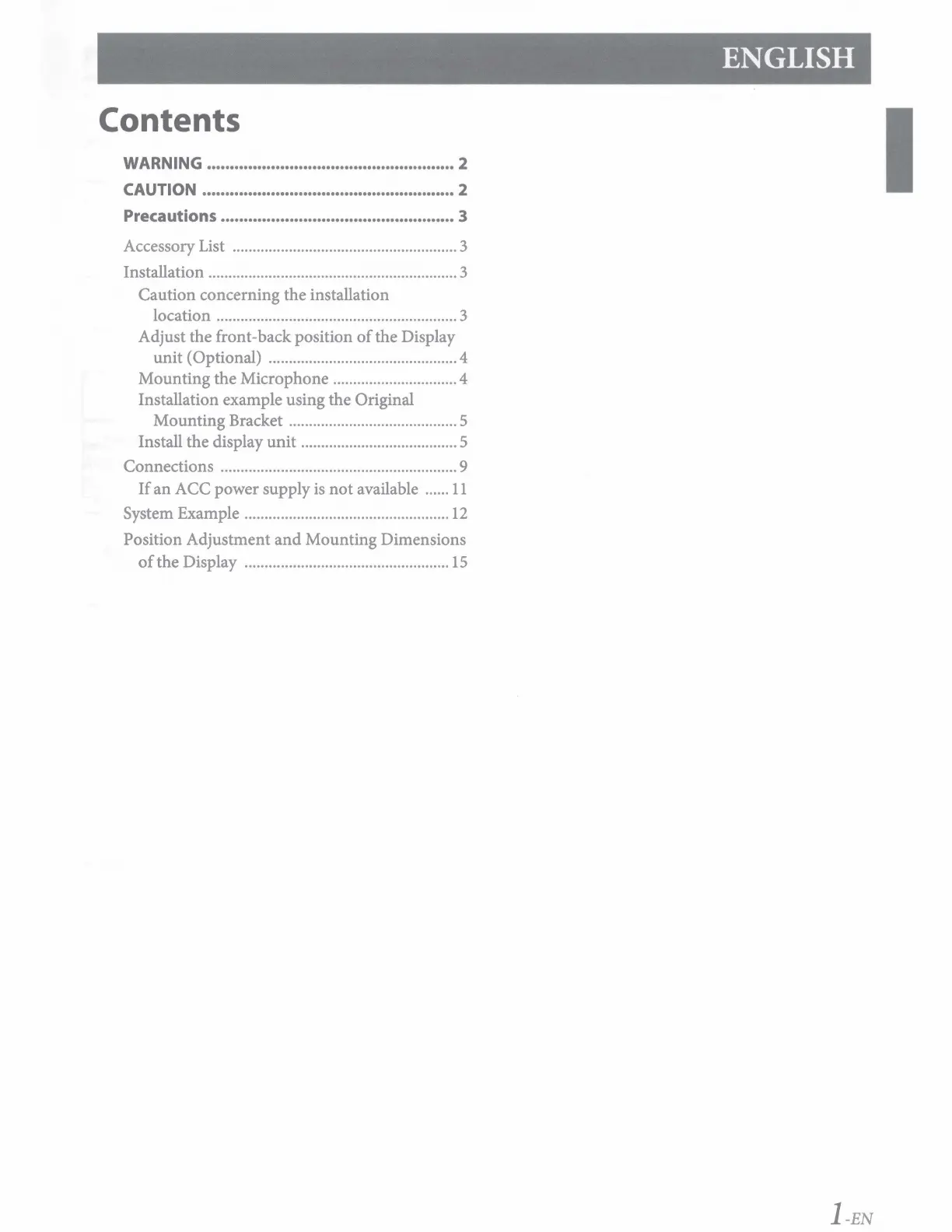 WARNING ...................................................... 2