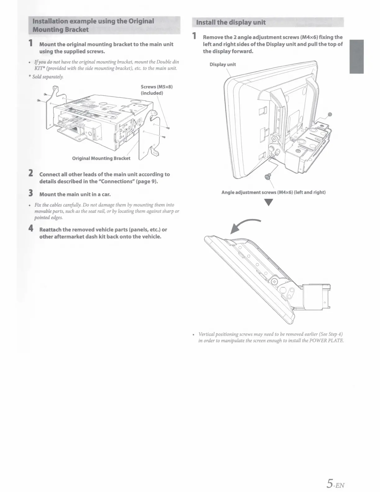 Alpine HALO9 - Installation Example Using the Original Mounting Bracket; Install the Display Unit