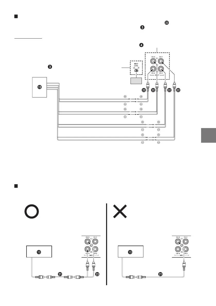 separatamente), impostate l’interruttore di livello di ingresso altoparlanti ( ) su “HI”.