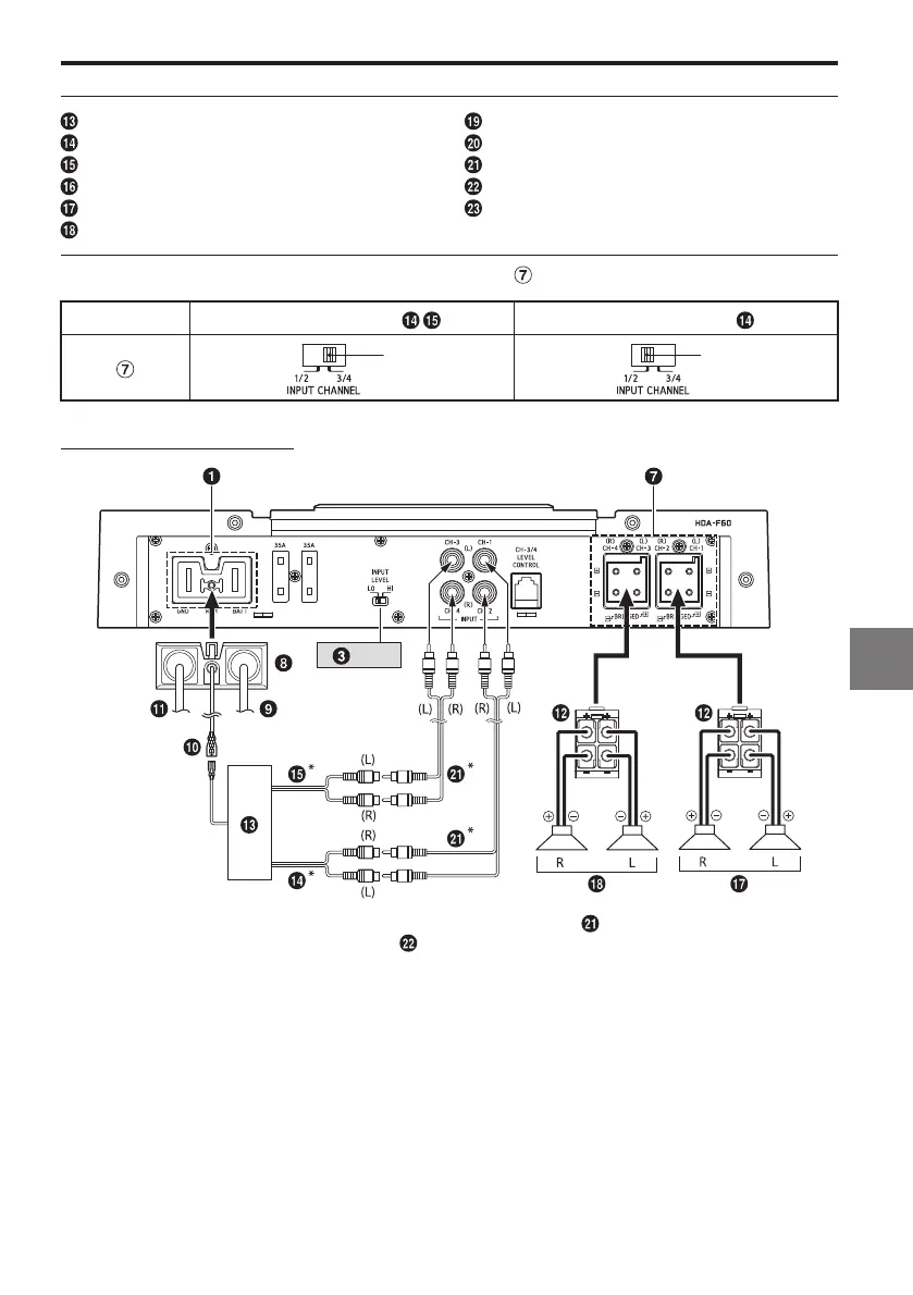 • Mer information om väljaren för ingångssignal ( ) på HDA-F60 finns i ”Grundläggande kopplingsschema
