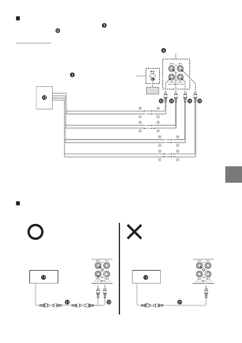 Ställ in väljaren för högtalarens ingångsnivå ( ) till ”HI” vid anslutning via en högtalar-RCA-