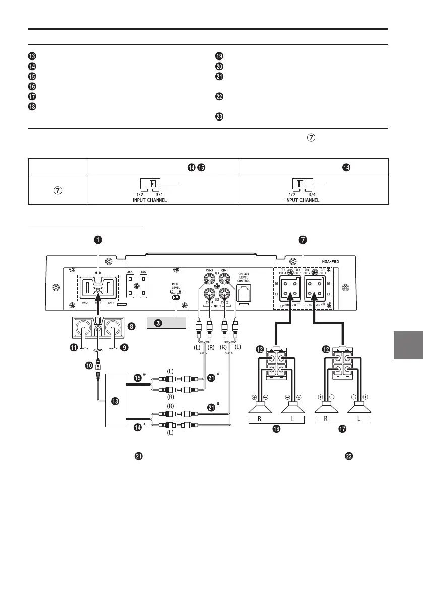 Для устройства HDA-F60 измените настройку переключателя входного канала ( ) в соответствии с