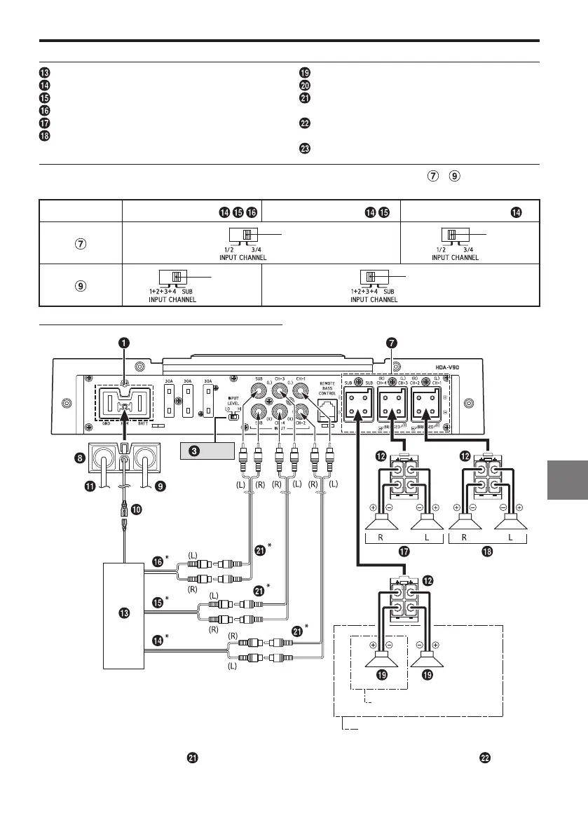 Для устройства HDA-V90 измените настройку переключателя входного канала ( )/( ) в соответствии