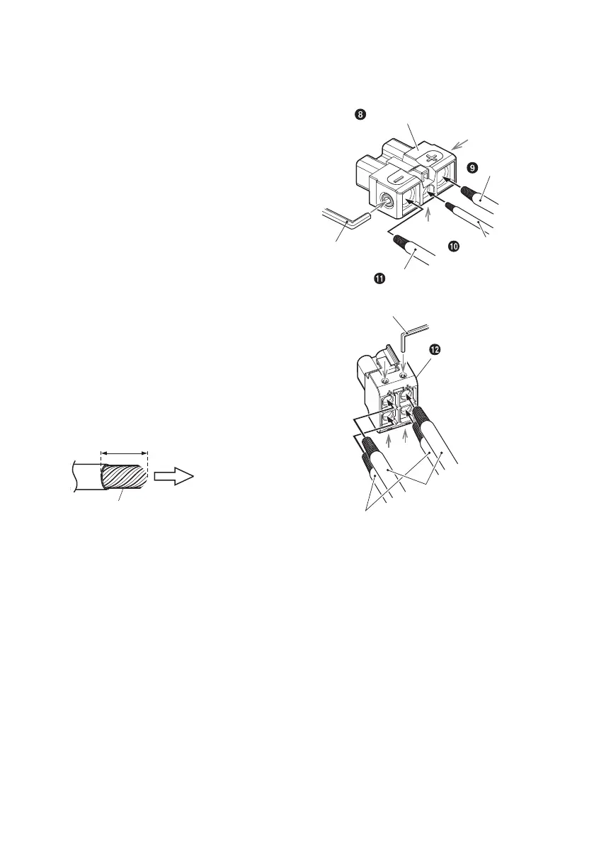2. 将导线端部的绝缘层去除约7 – 10 mm