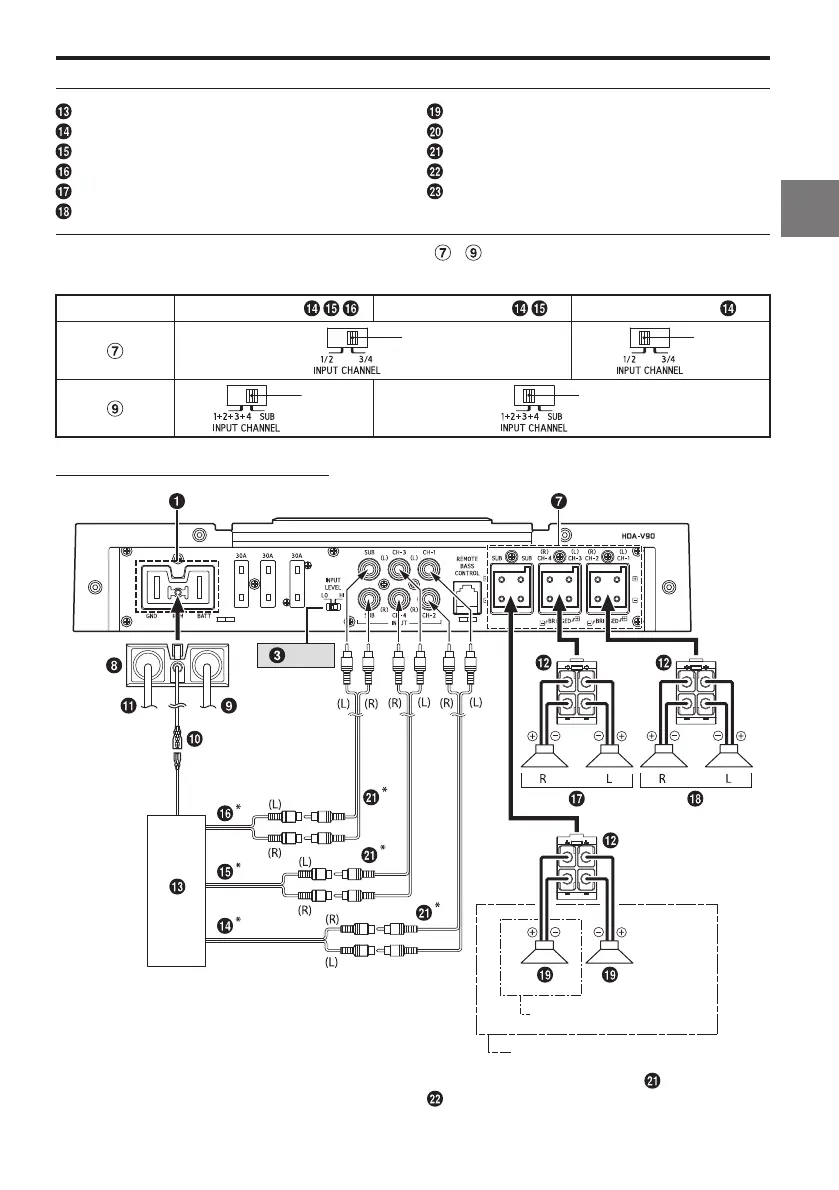 For HDA-V90, change the Input Channel Selector Switch ( )/( ) setting according to the number of