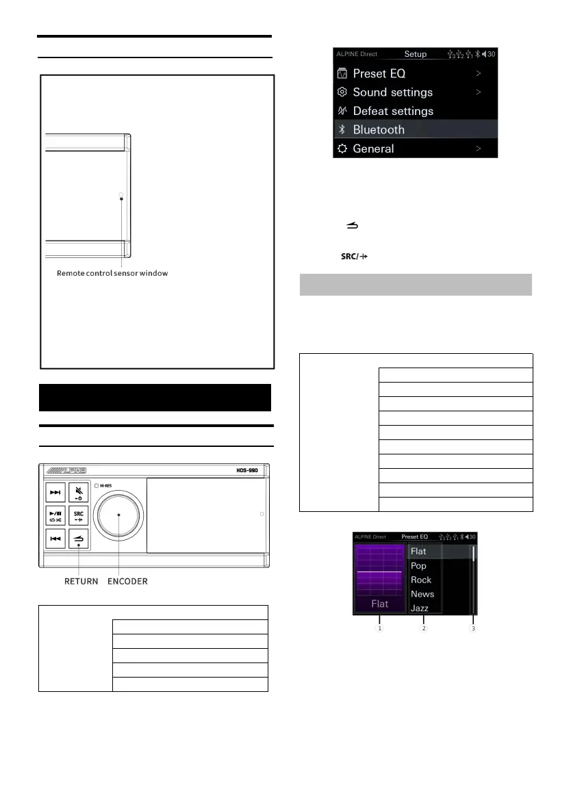 1 On th e preset EQ page, rotary encoder to