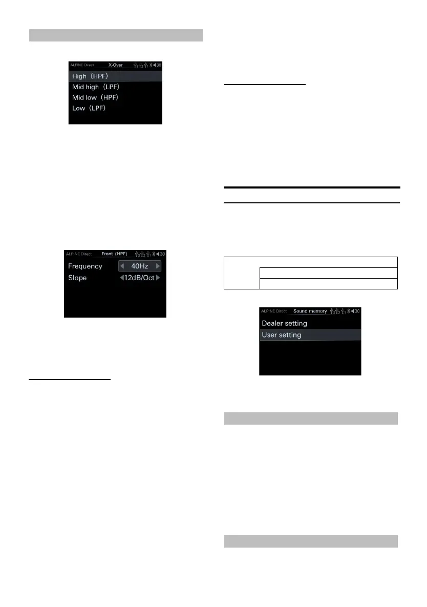 Setting items: Treble/Mid High Pass/Mid Low