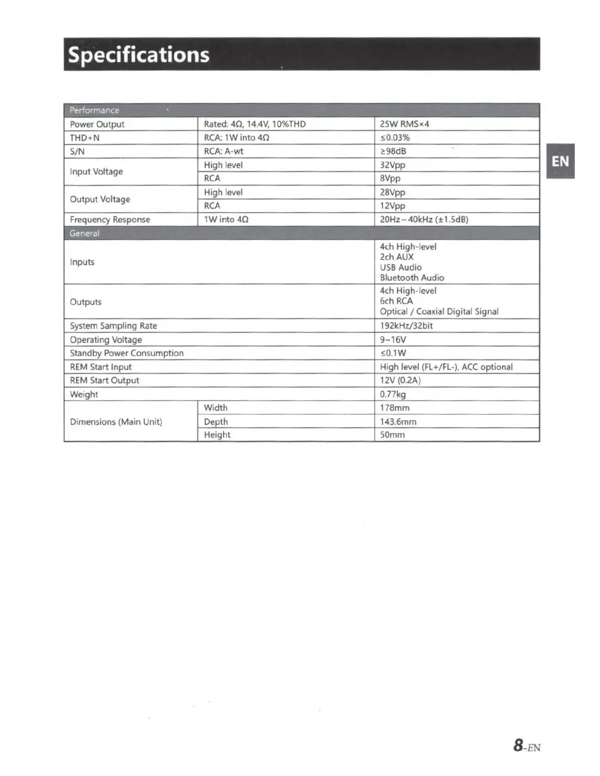 Dimensions (Main Unit) Depth 143.