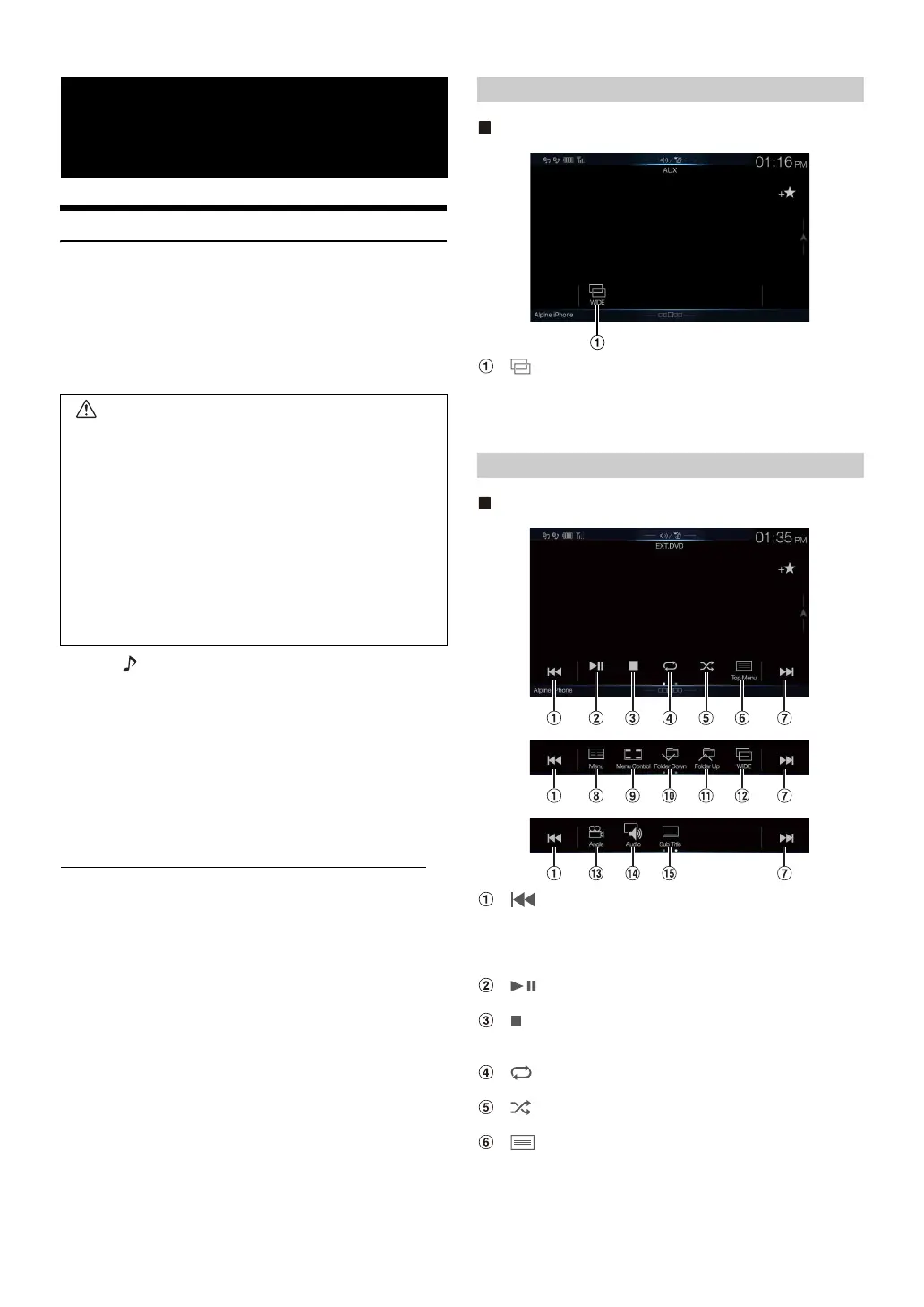 AUX Operation Screen Display During Video File Playback