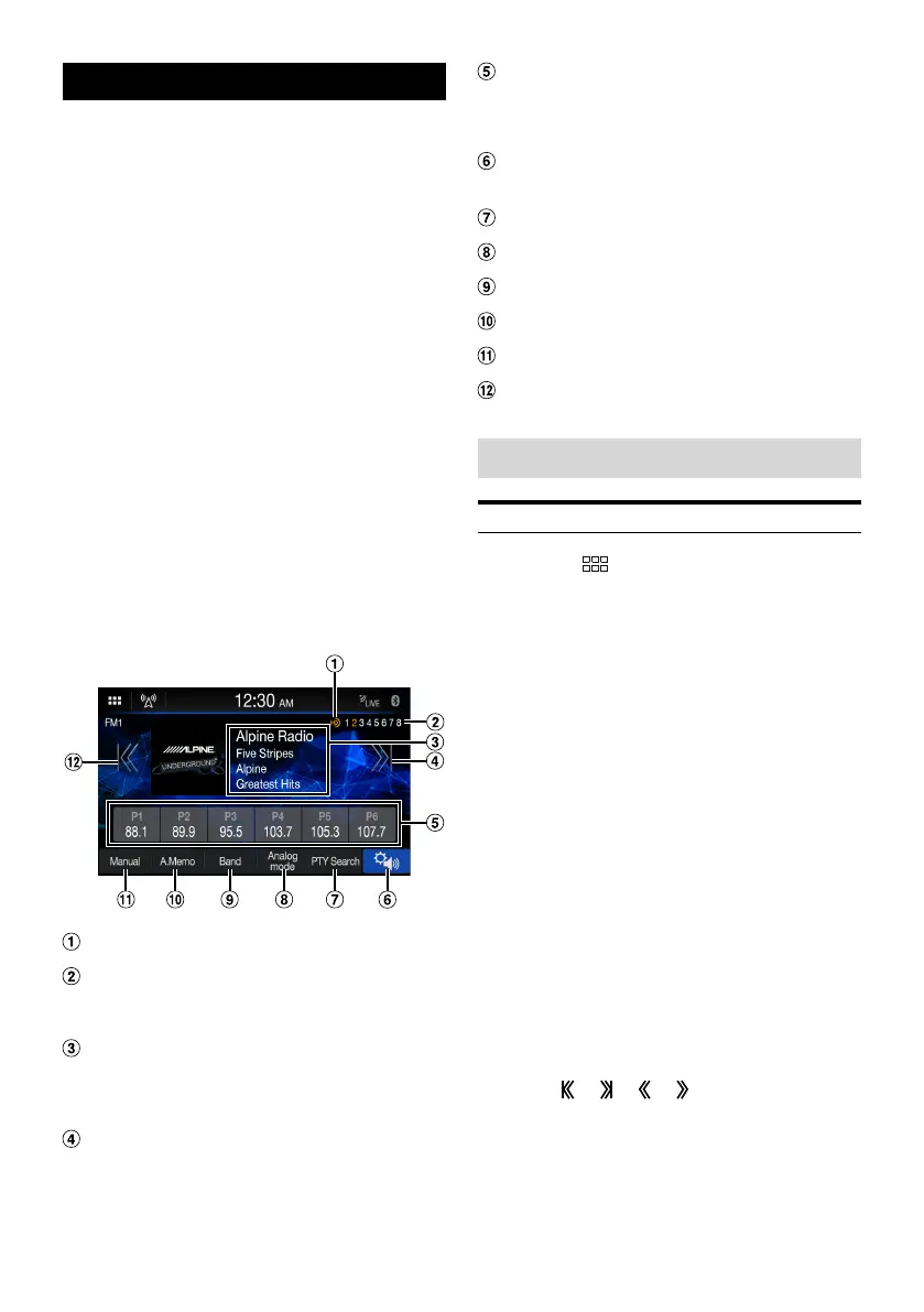 4 Touch [ ], [ ], [ ], [ ] to change the radio