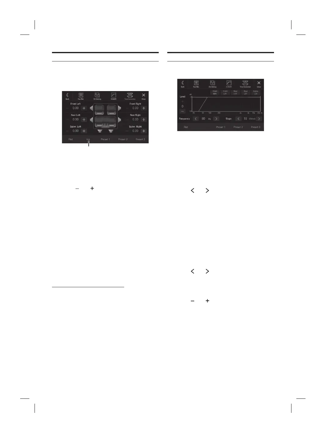 2 Touch [ ] or [ ] for each speaker to adjust