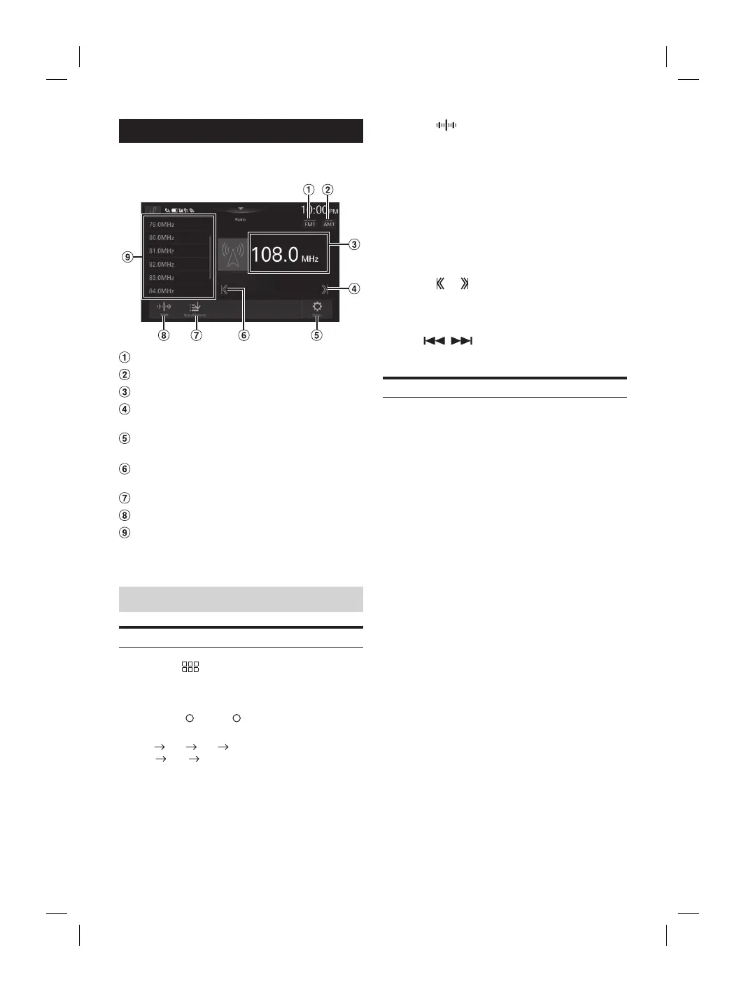 (12 stations for each band; FM1, FM2, FM3, AM1 or