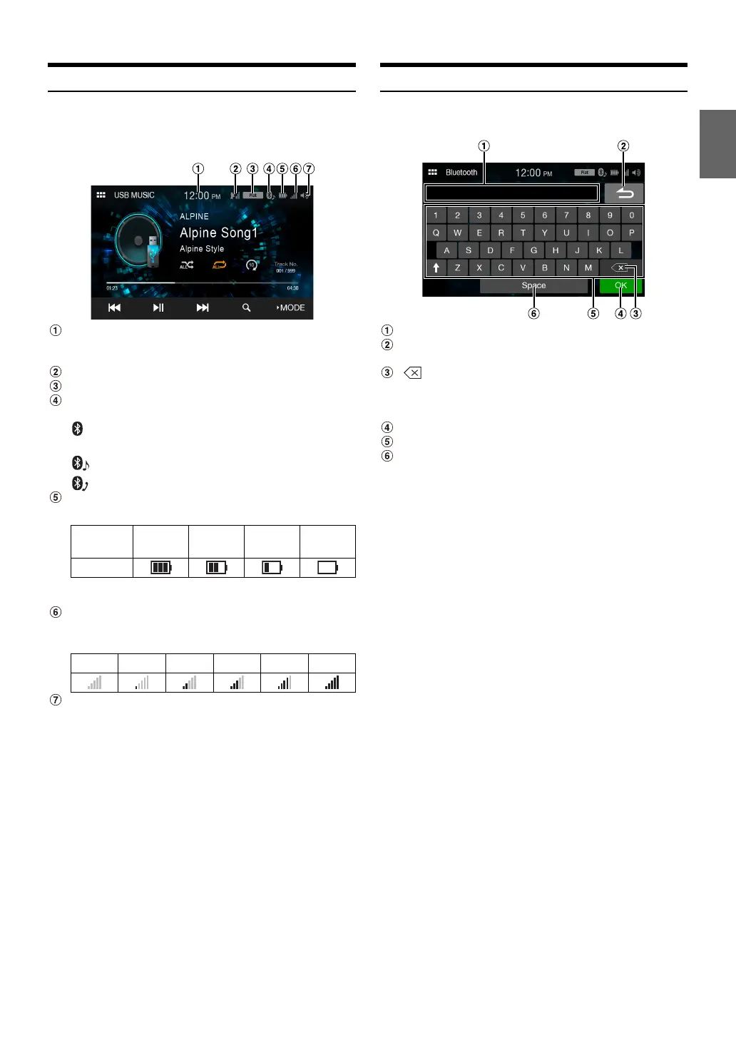 Indicates the battery level of the connected Bluetooth