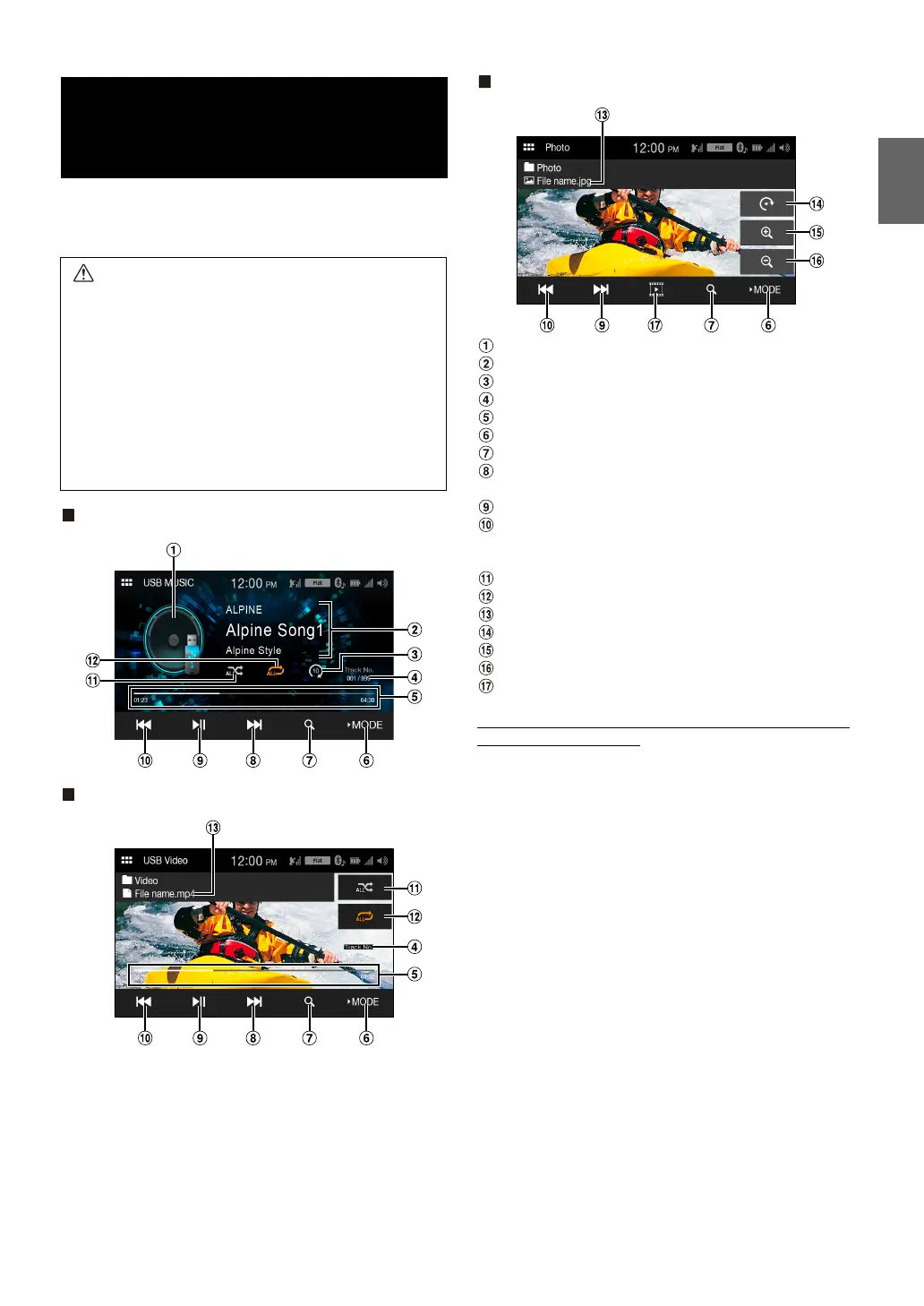 Touch the screen while the USB Video/USB Photo playback