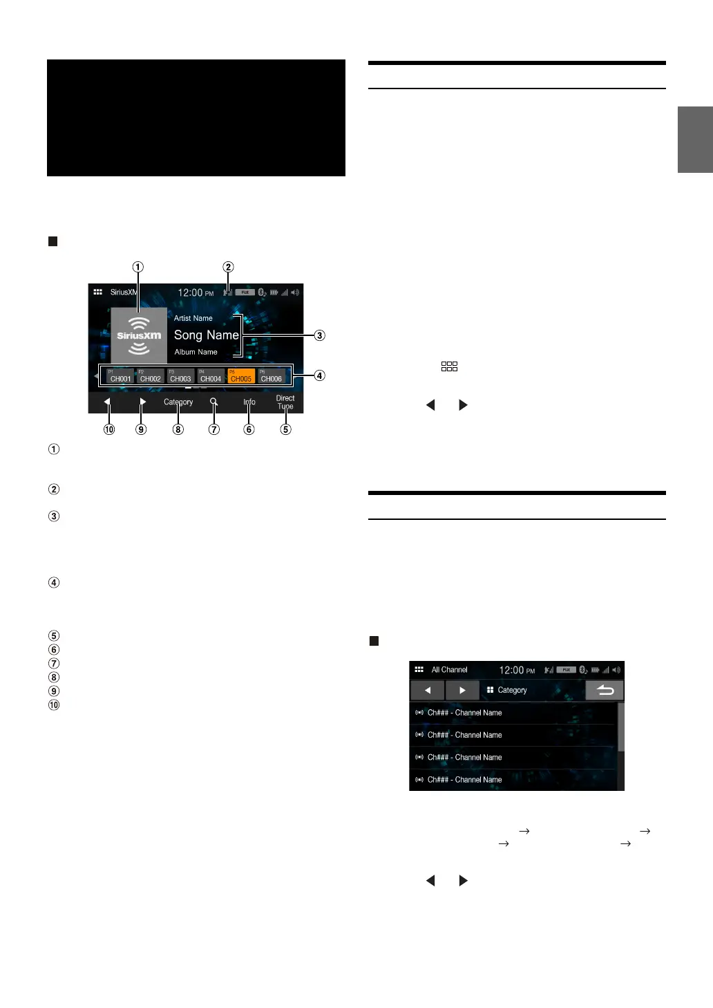 • The SiriusXM Satellite Radio controls on this unit are available only