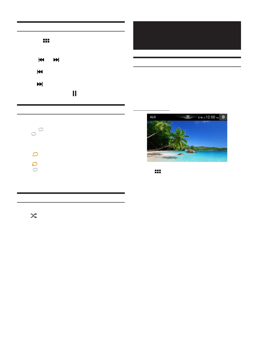 Touch [AUX] Display AUX screen