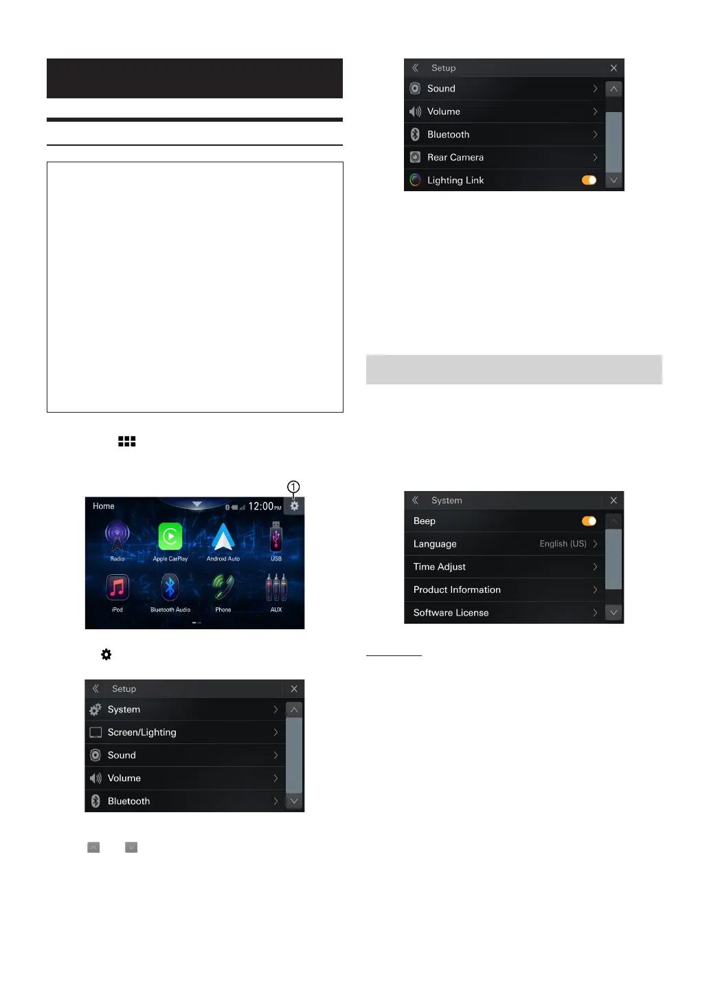 System: See “System Setup” (page 26).